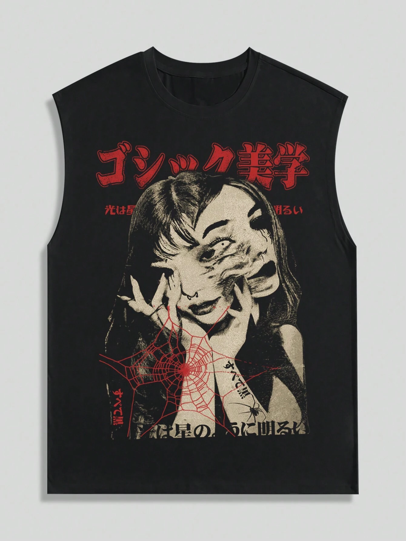 Street Life ملابس علوية كاجوال بياقة طاقم مطبوع بصورة أنمي، بطراز مدرسي، بتصميم جمالي من عام 2000