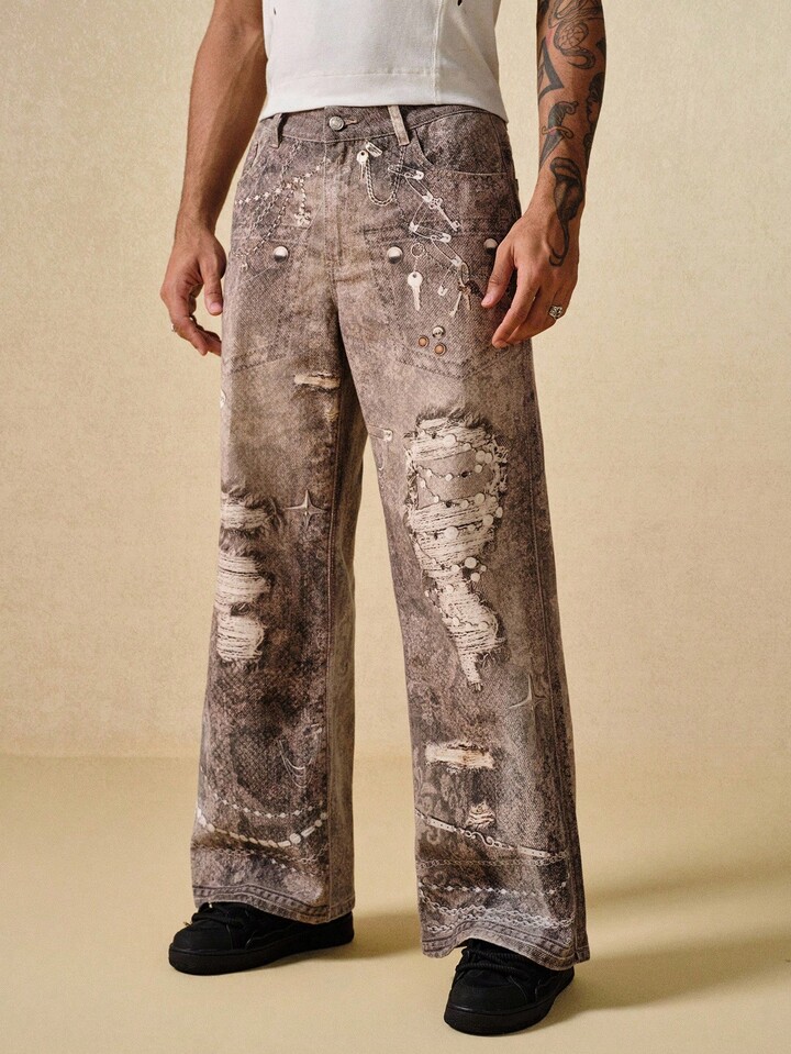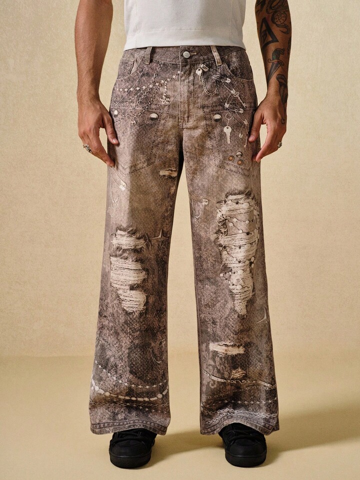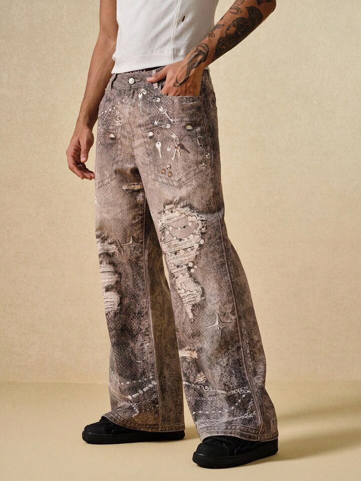 Street Life بنطلون جينز رجالي كاجوال مريح وفضفاض مخصص