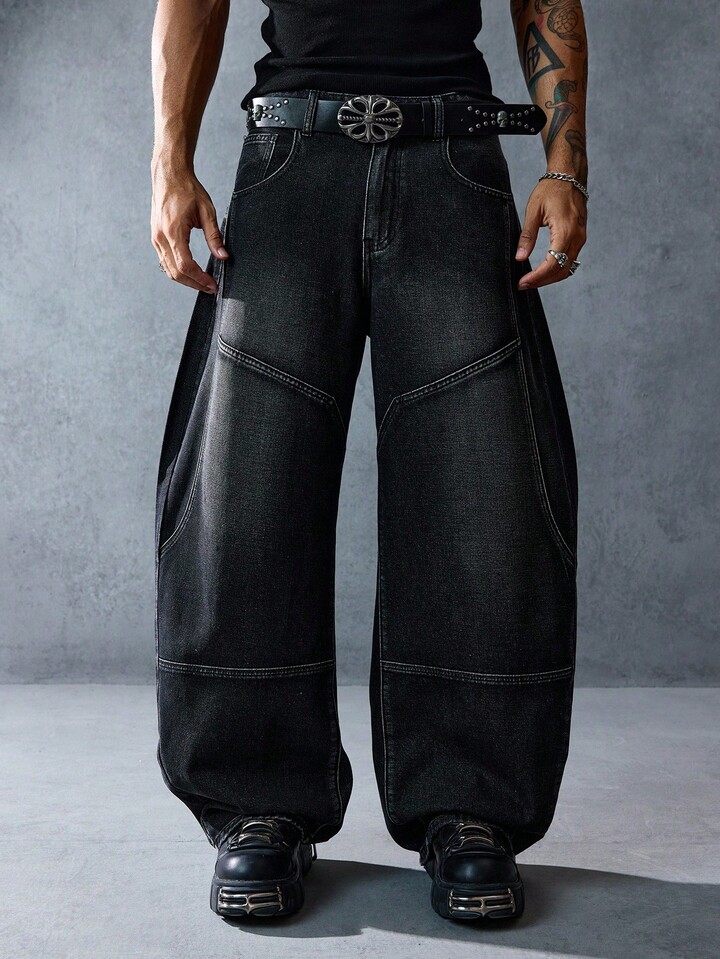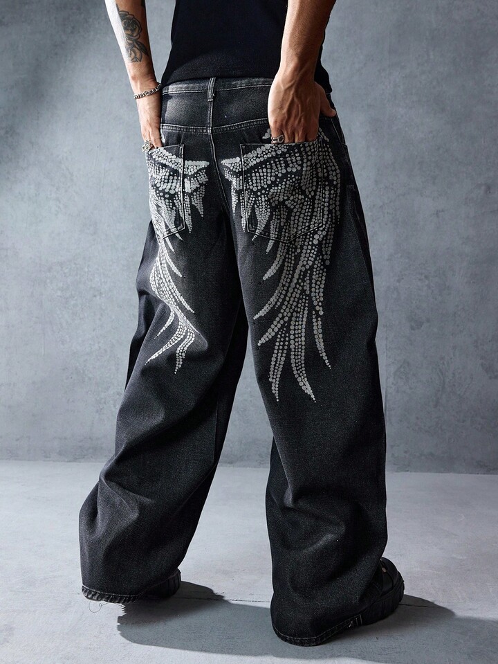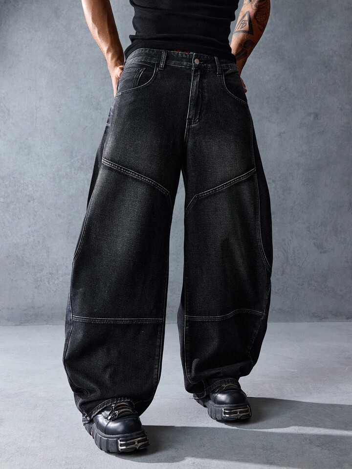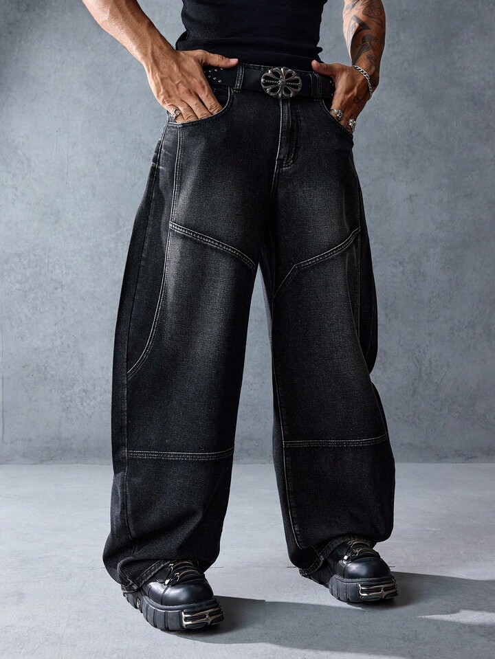 Street Life بنطلون جينز رجالي مرتخي مستقيم الساق بأزرار، مناسب للارتداء اليومي