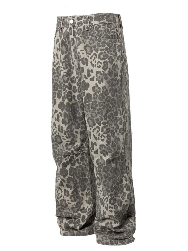 Street Life بنطلون جينز رجالي كاجوال مستقيم الساق ذو تصميم مرتاح ومطبوع برسومات نمر تم غسله