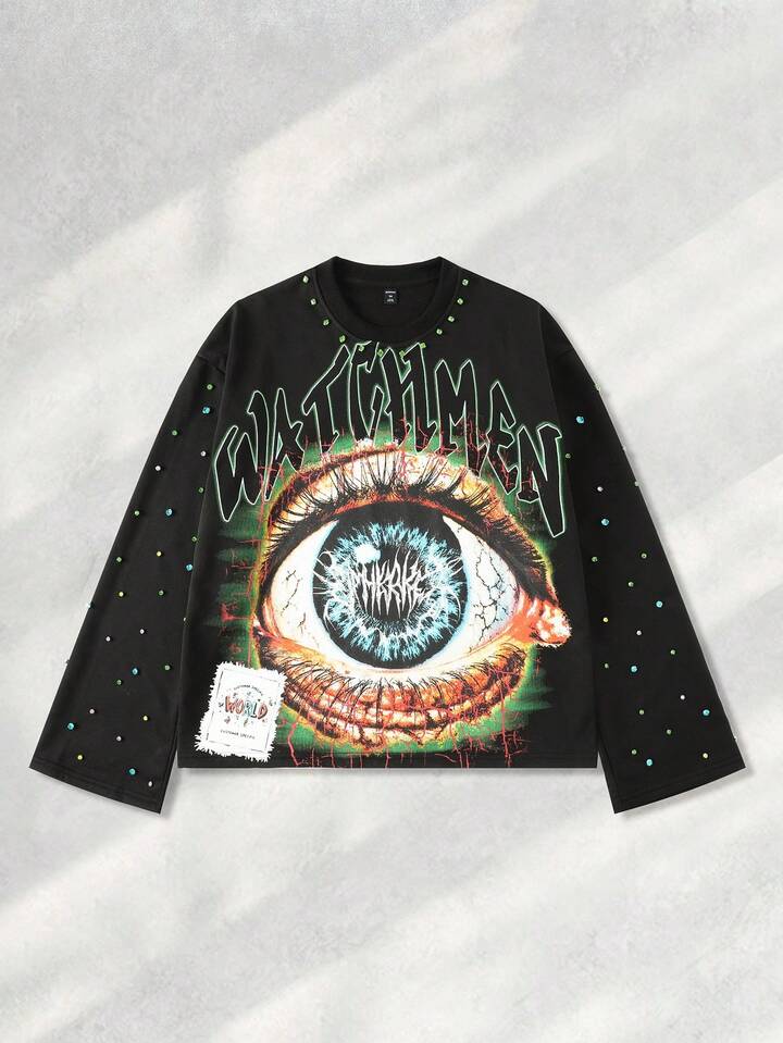 Street Life تي شيرت رجالي قصير بياقة طاقم وطباعة جرافيك، فضفاض وكاجوال، خريف