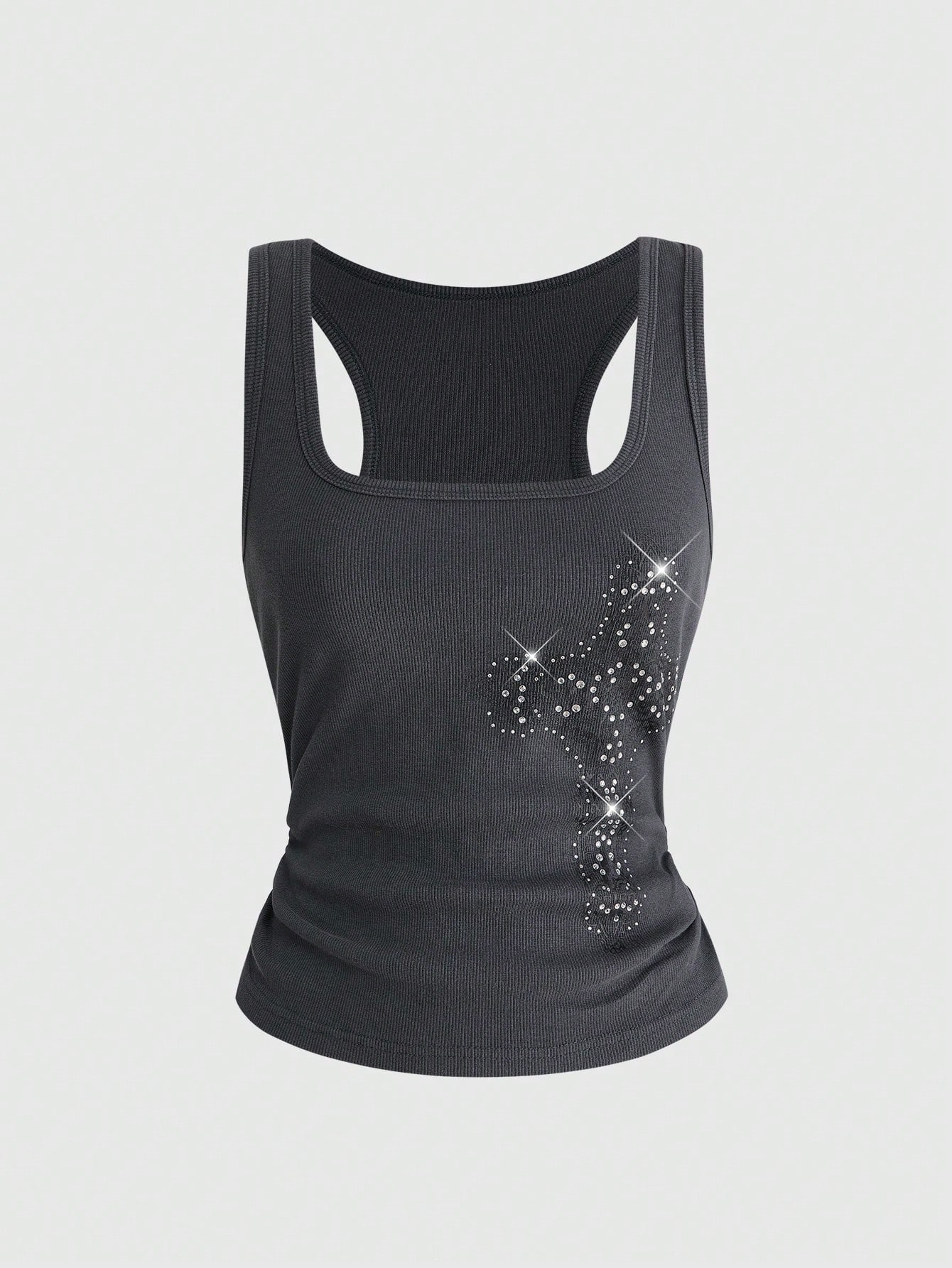 Street Life توب كامي ضيق مغسول بالحجر الكريستالي مطبوع بصليب جرانج