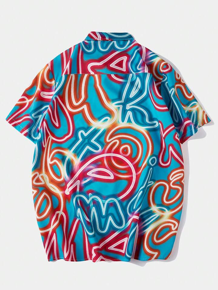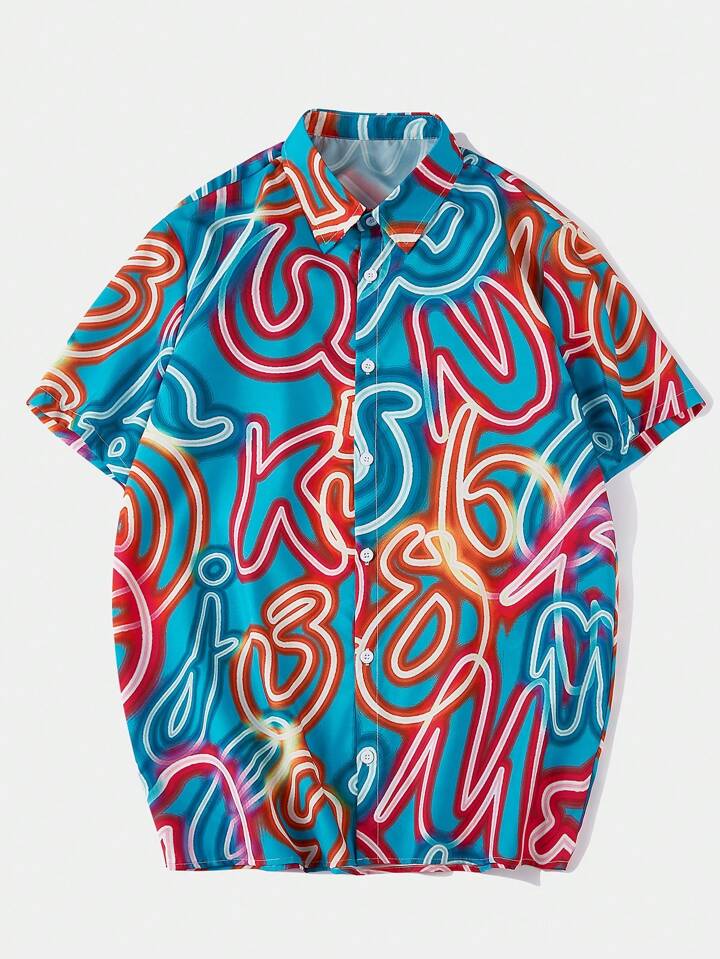 Street Life قميص طباعة شامل أزرار علوية للشباب