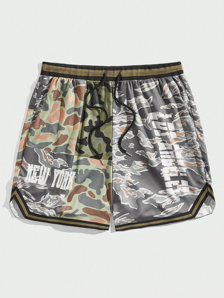 Street Life شورتات برباط مموة بطباعة أحرف للشباب