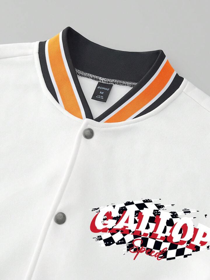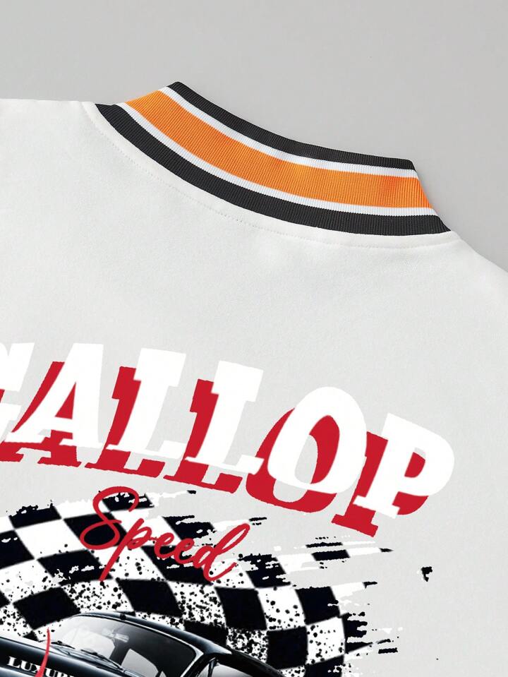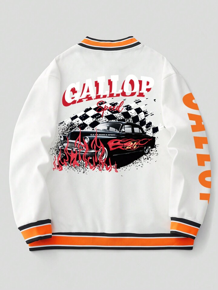 Street Life جاكيت بجرافيك سيارة وعبارة مقلم مخطط للشباب