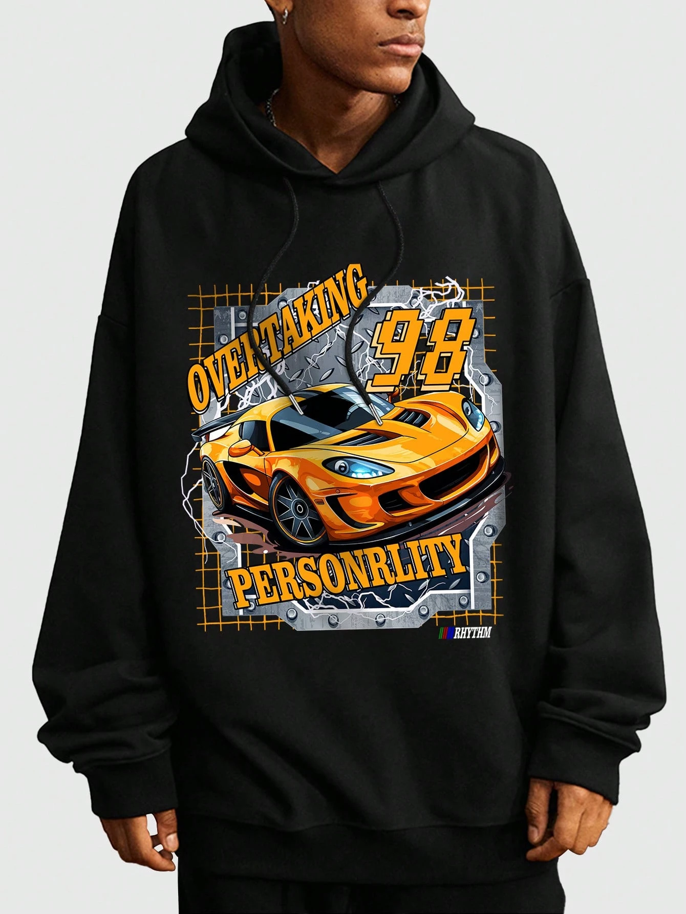 Street Life هودي بجرافيك عبارة وسيارة رباط منخفض الاكتاف للشباب