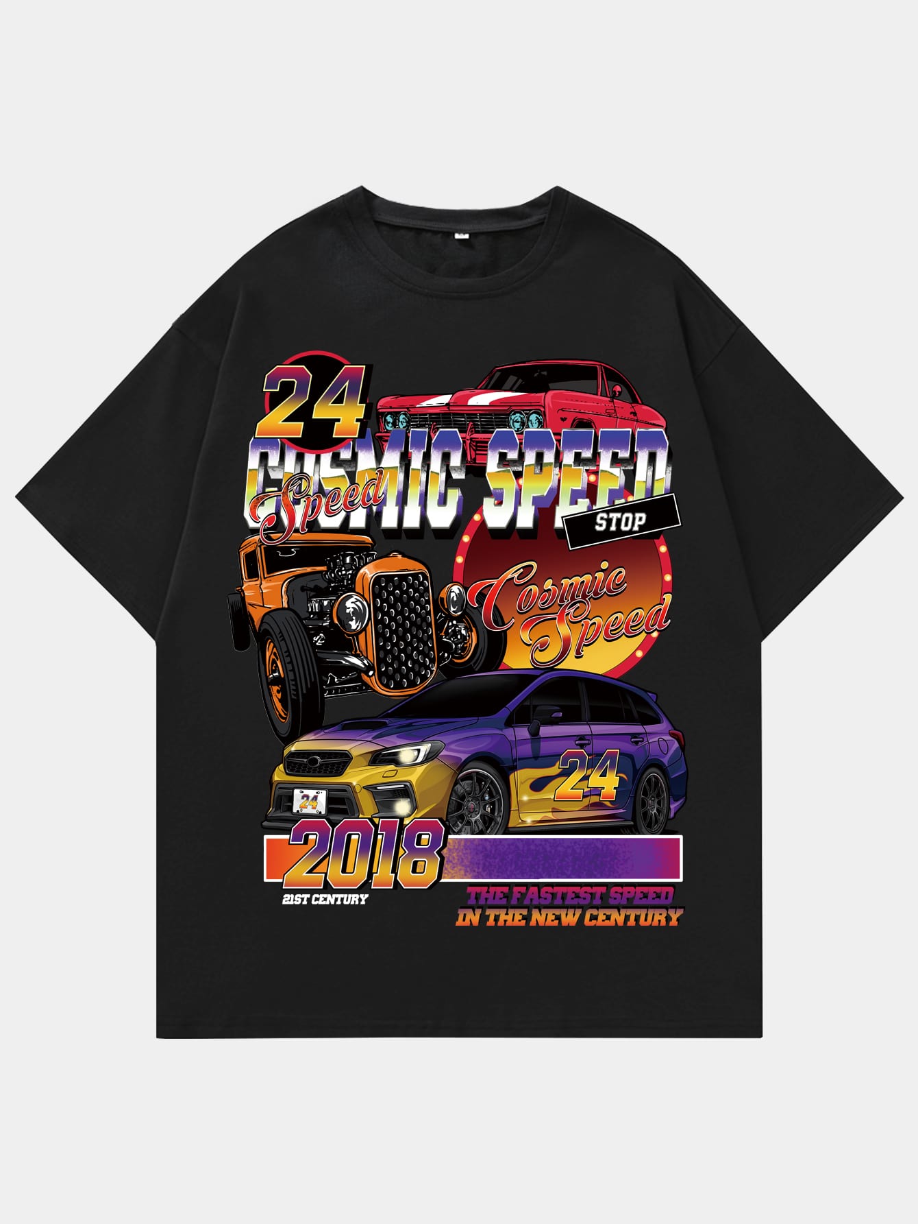 Street Life تي شيرت بجرافيك عبارة وسيارة للشباب