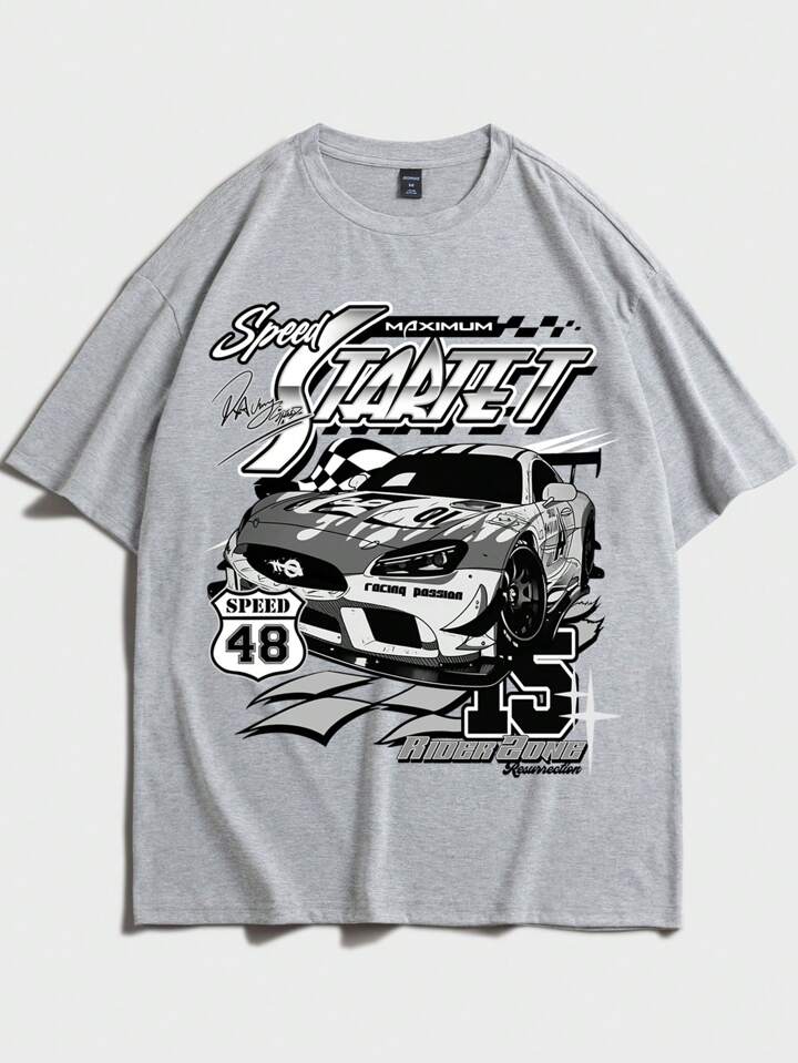 Street Life تي شيرت بجرافيك عبارة وسيارة للشباب