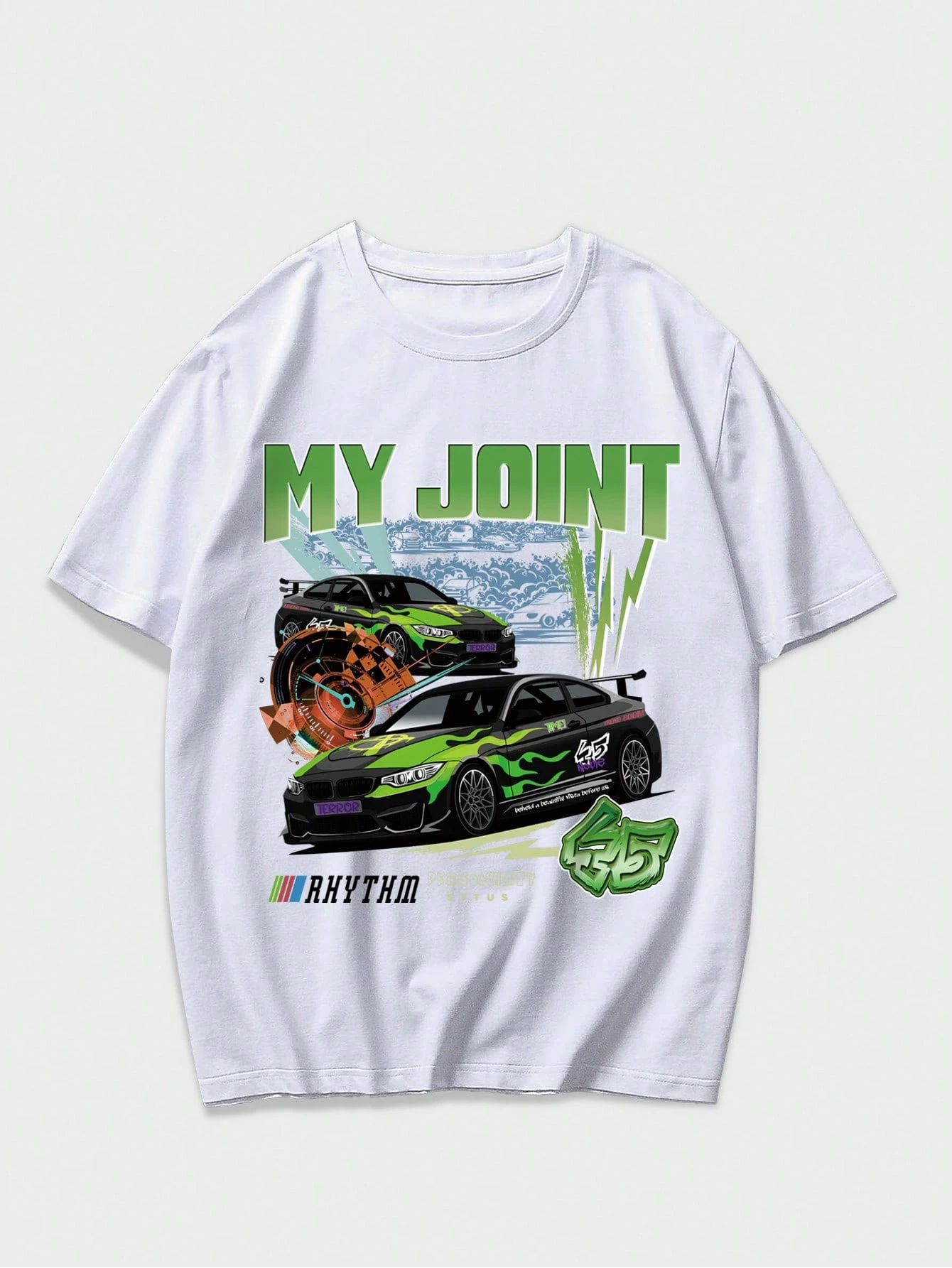Street Life تي شيرت بجرافيك عبارة وسيارة للشباب
