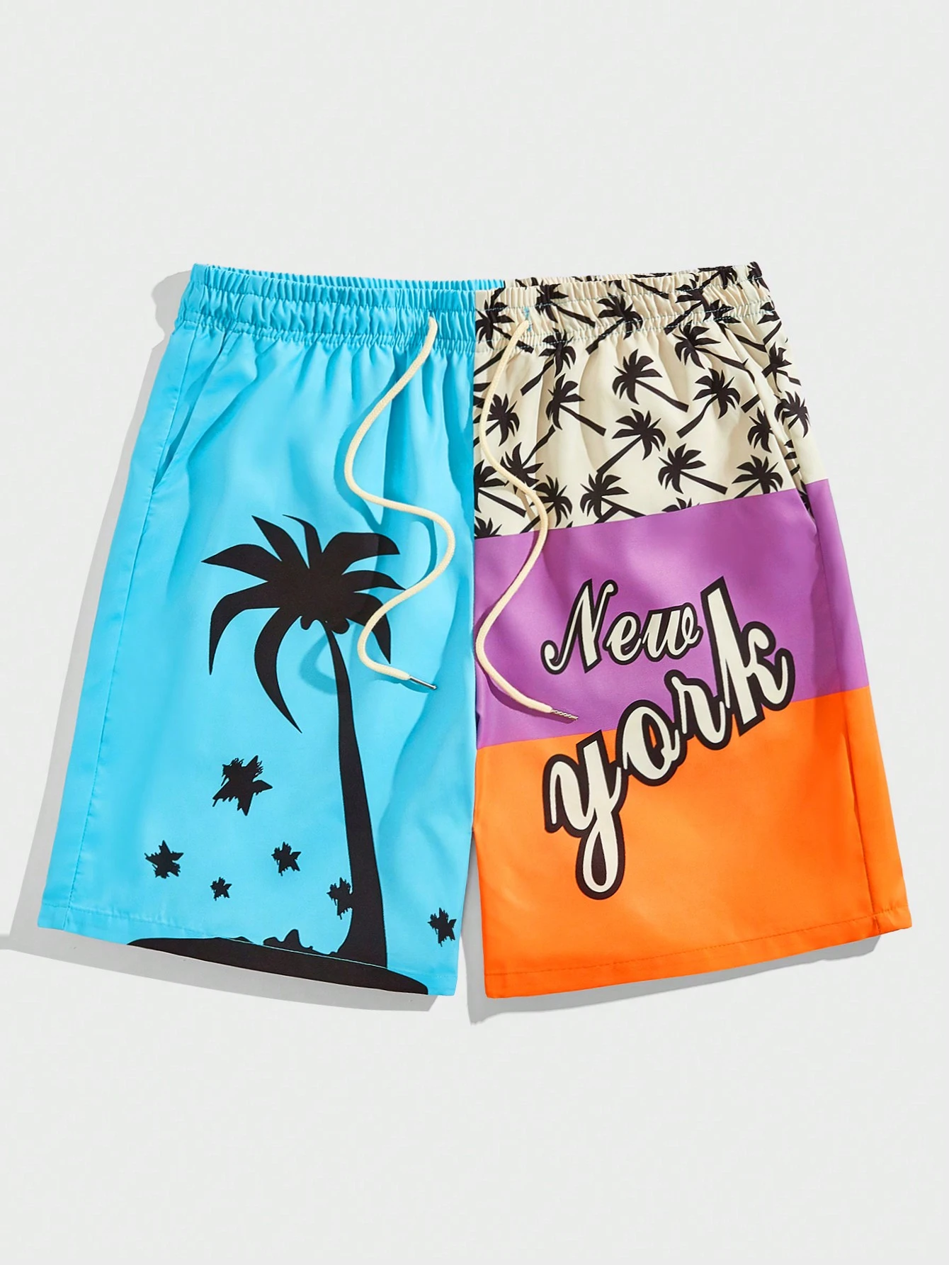 Street Life بنطلون قصير بجرافيك عبارة وشجرة جوز الهند رباط خصر للشباب