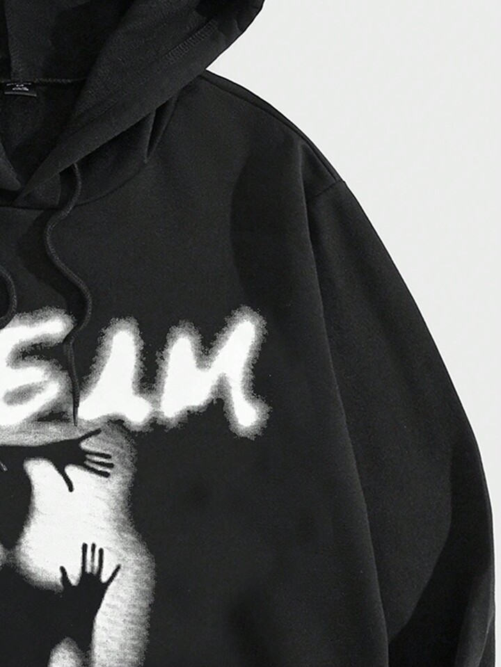 Street Life هودي بجرافيك شخصية وعبارة رباط للشباب