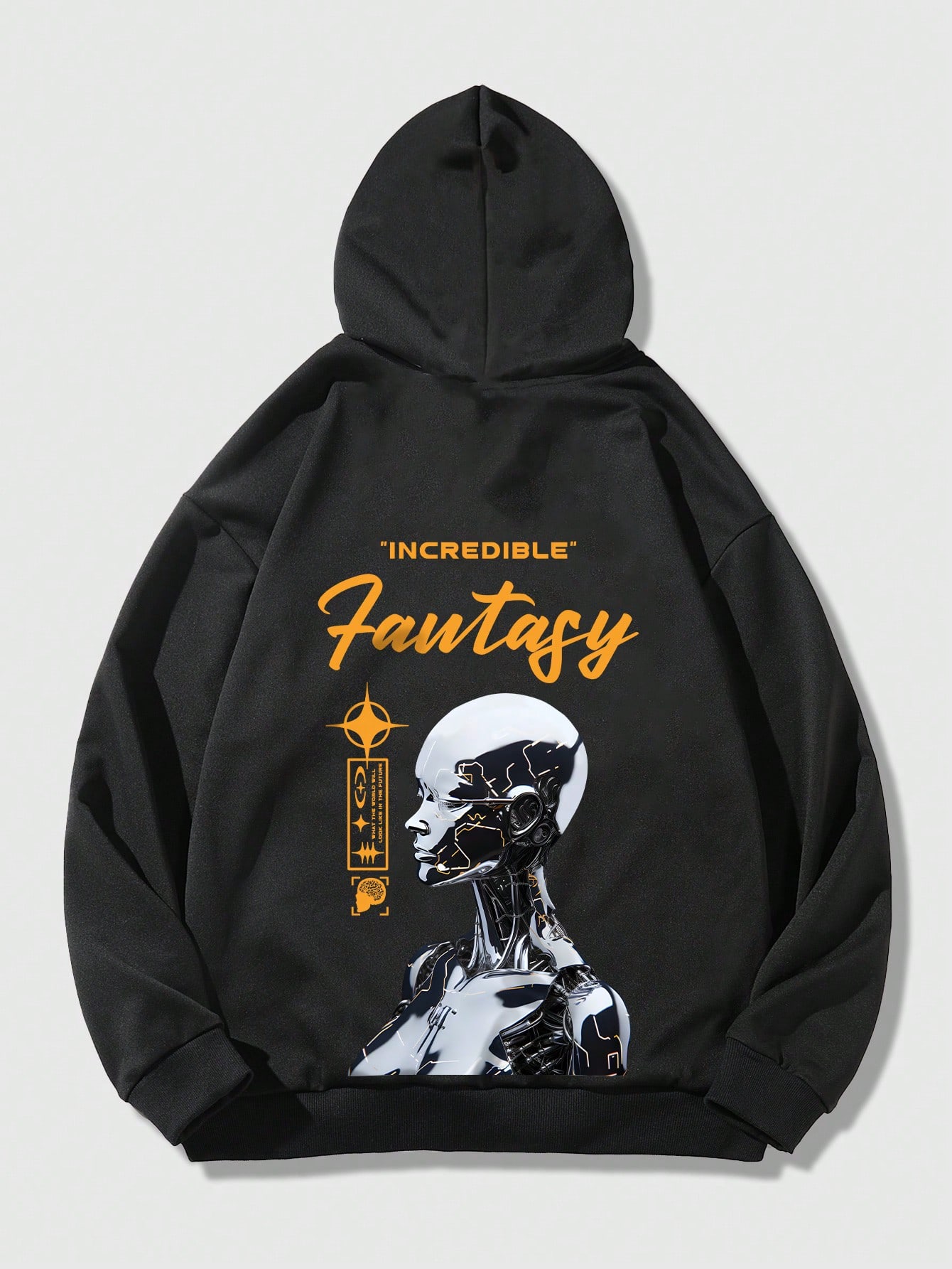 Street Life هودي بجرافيك شخصية وعبارة منخفض الاكتاف رباط للشباب
