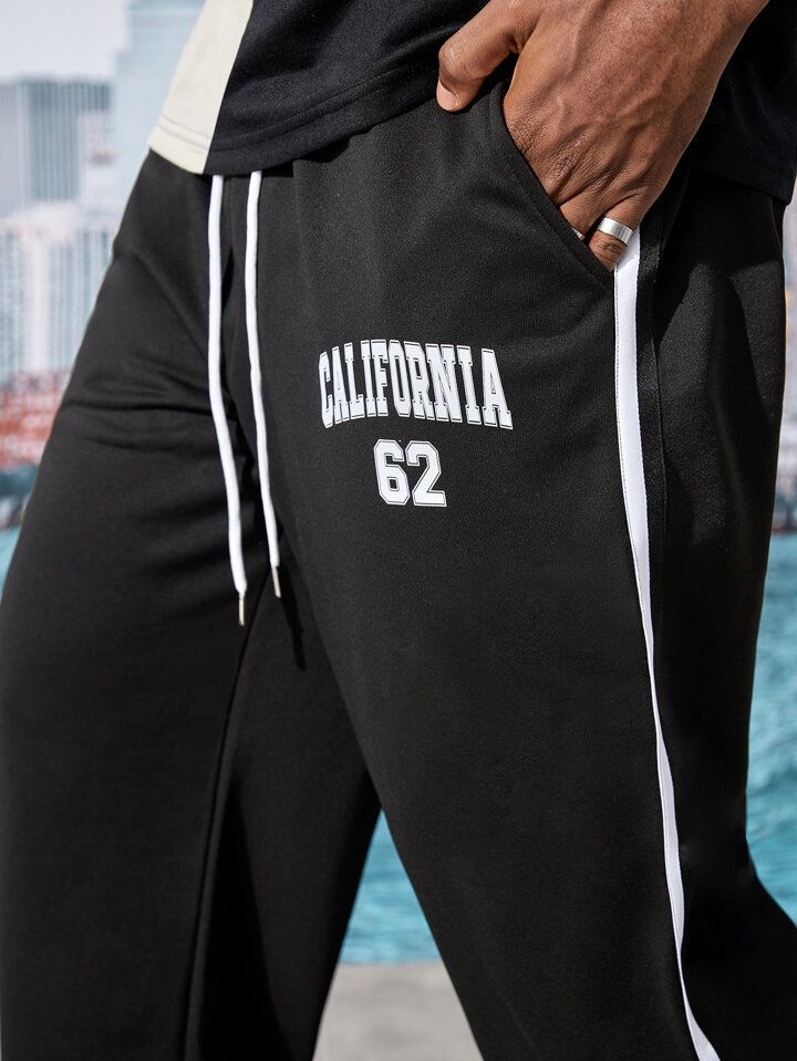 Street Life بناطيل رياضي بطباعة أحرف بشريط جانبي متباين رباط خصر للشباب