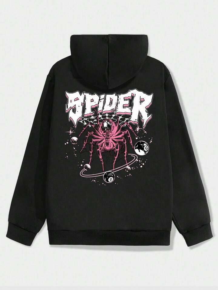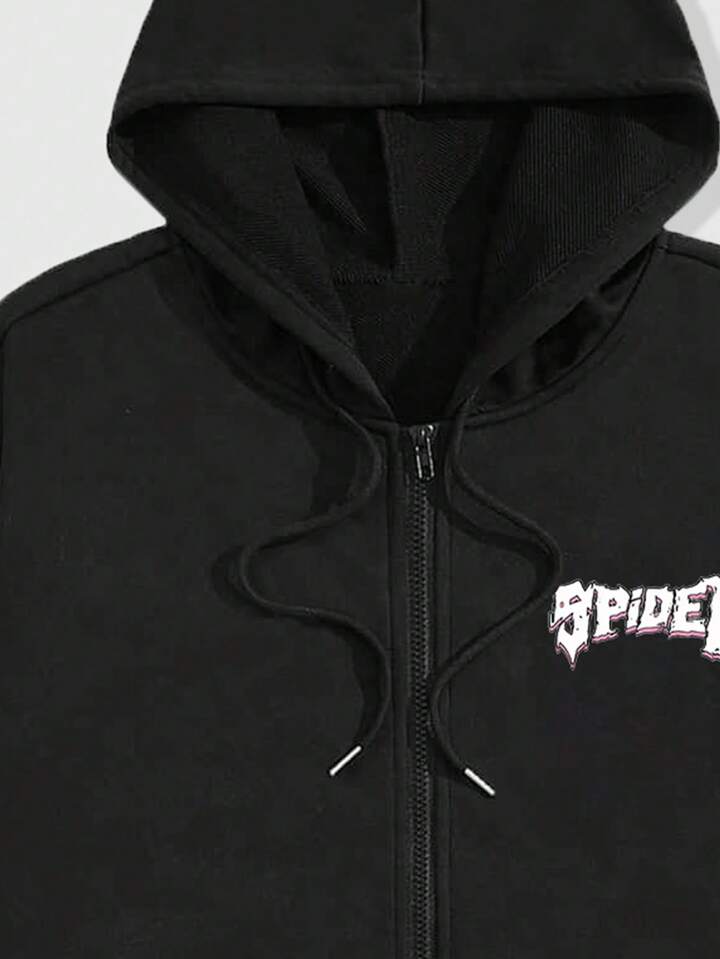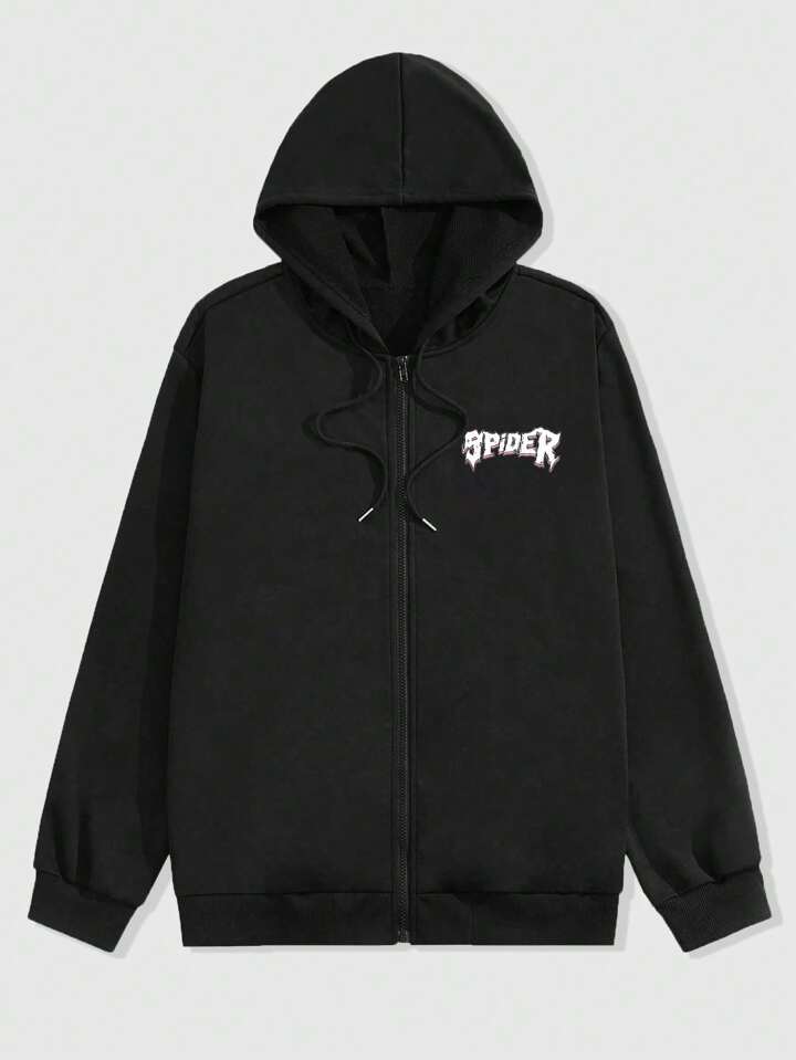 Street Life هودي بسحاب بطباعة أحرف رباط للشباب