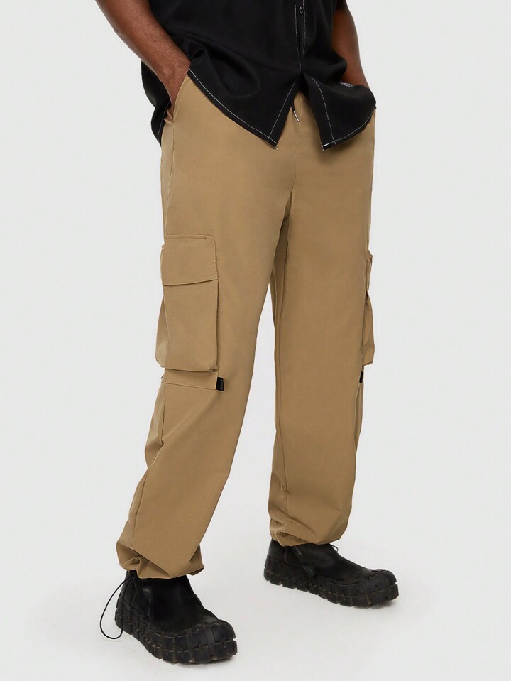 Street Life بنطلون كارجو تفاصيل مرقع بعبارة جيب جانبي قلاب رباط خصر للشباب