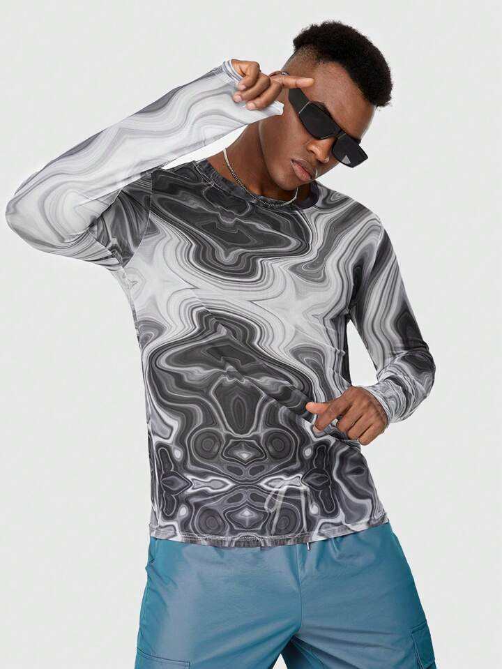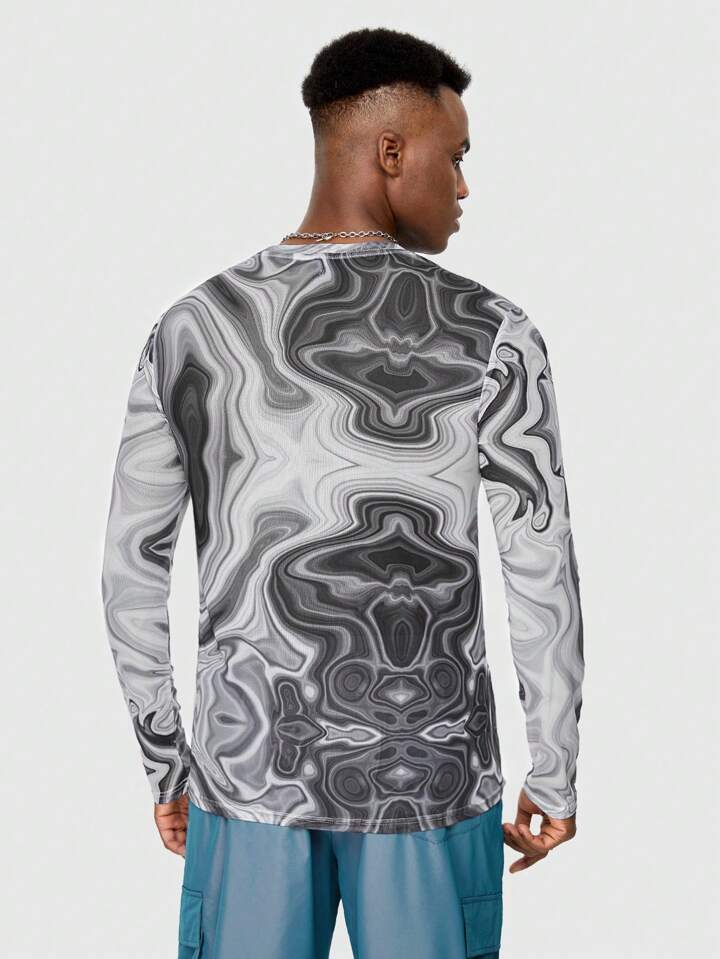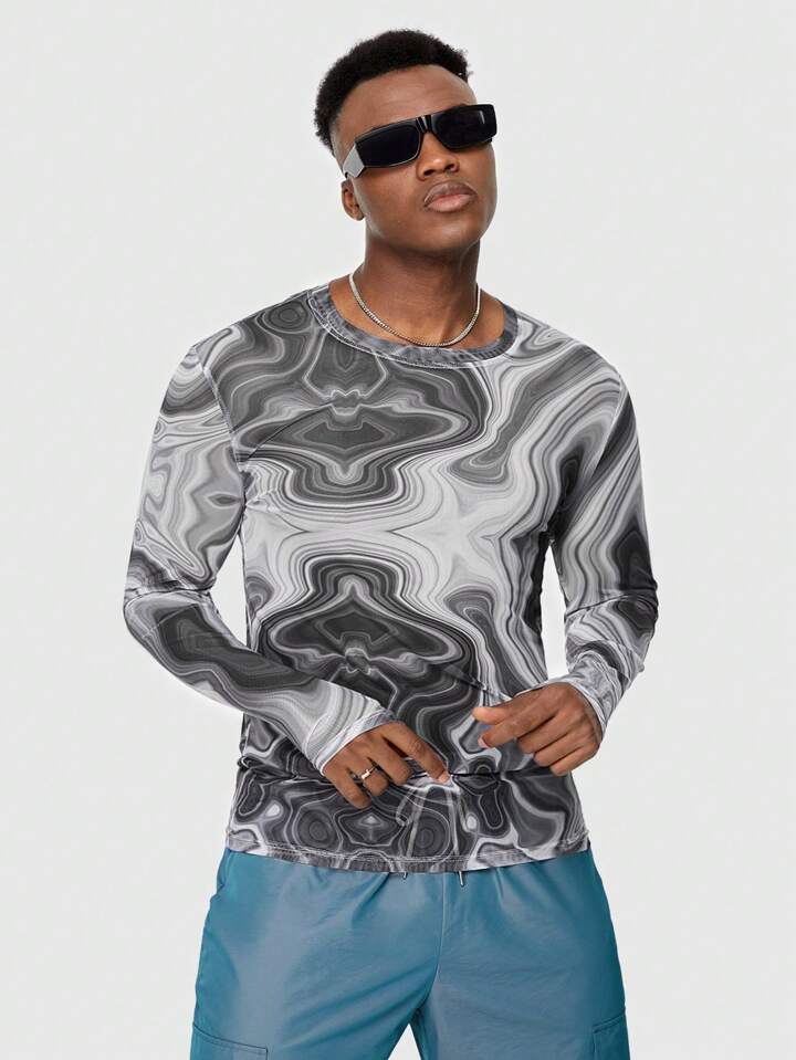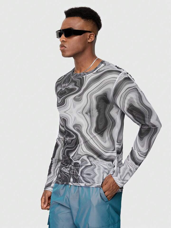 Street Life تي شيرت بطباعة رخام شبكة للشباب