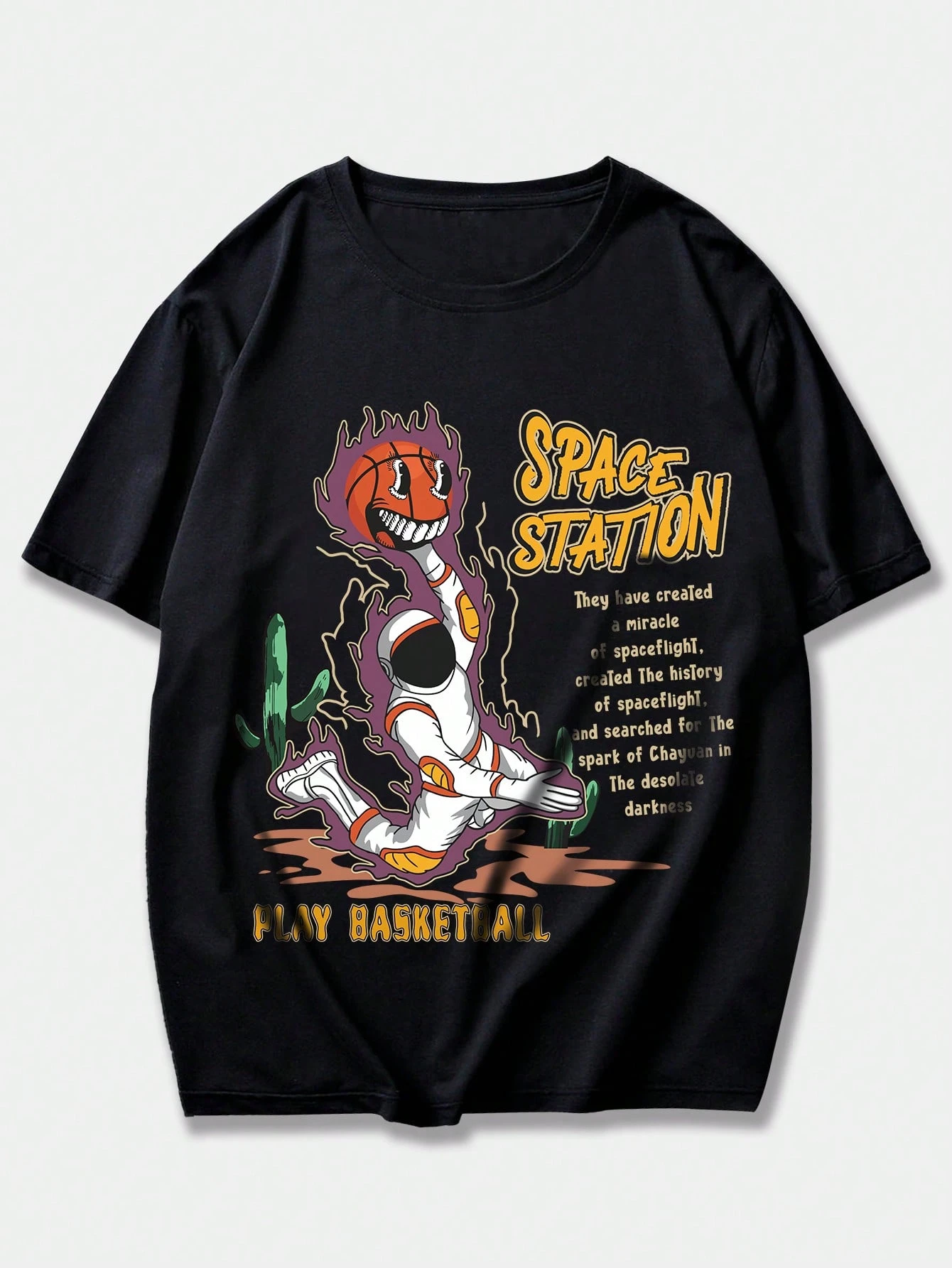 Street Life تي شيرت بجرافيك شعار ورسوم متحركة للشباب