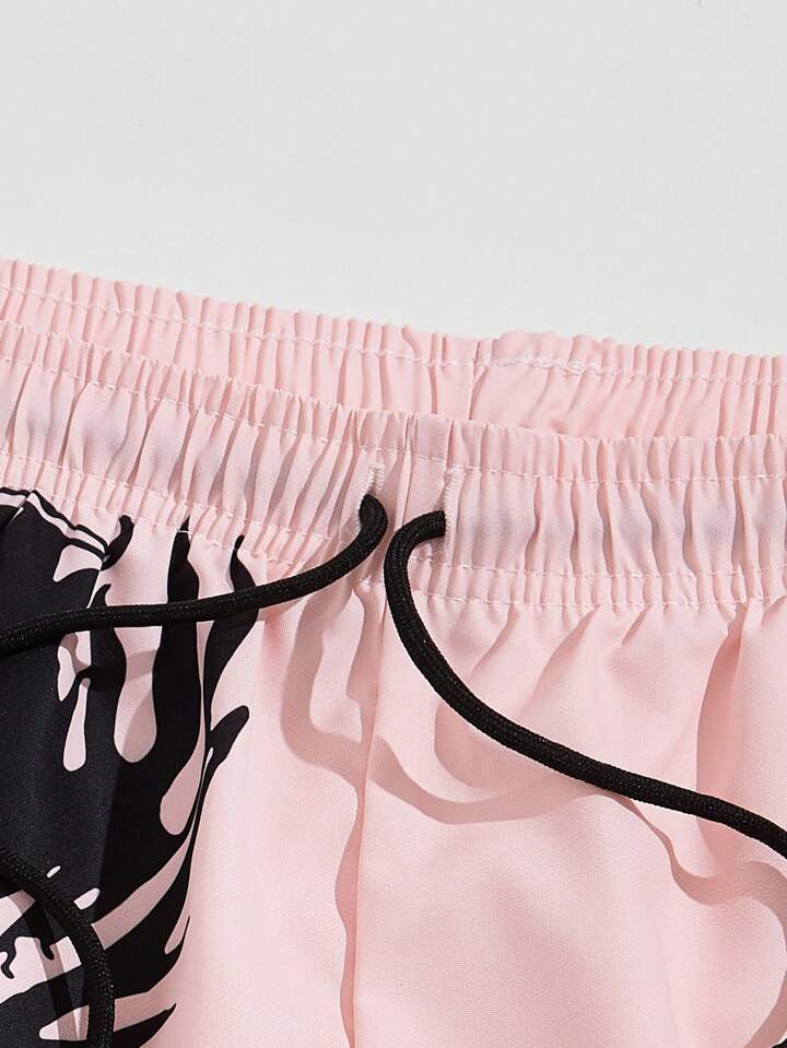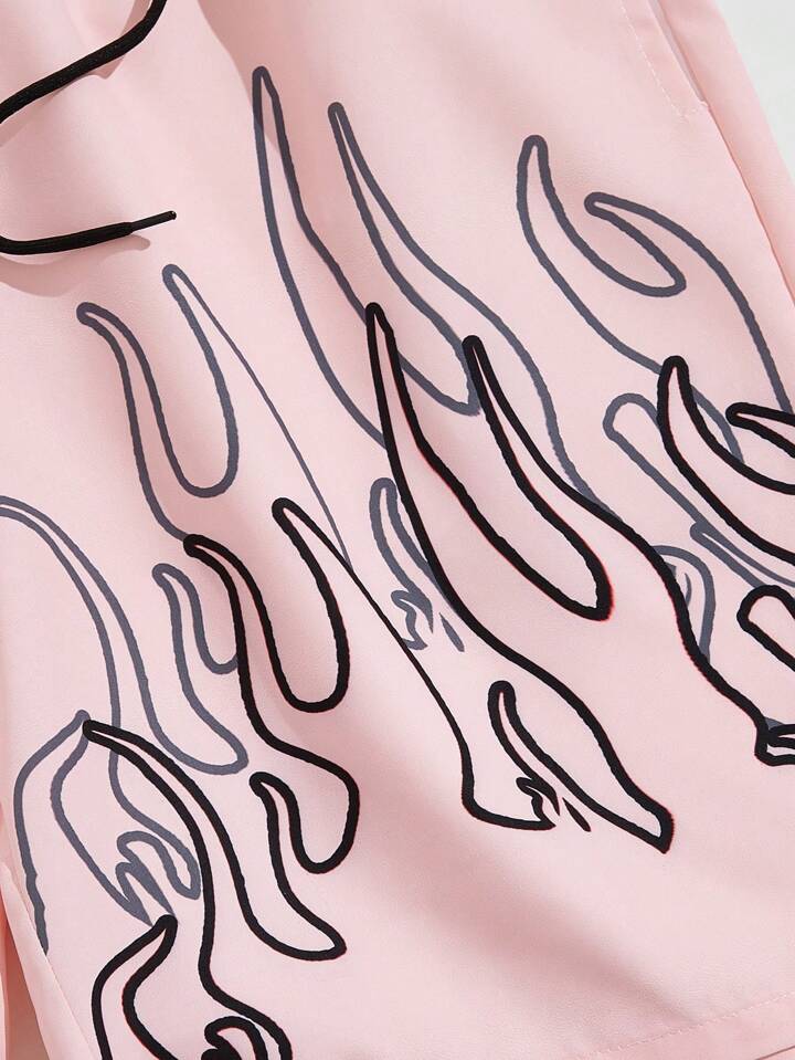 Street Life بنطلون قصير شعار & بطباعة نار رباط خصر للشباب