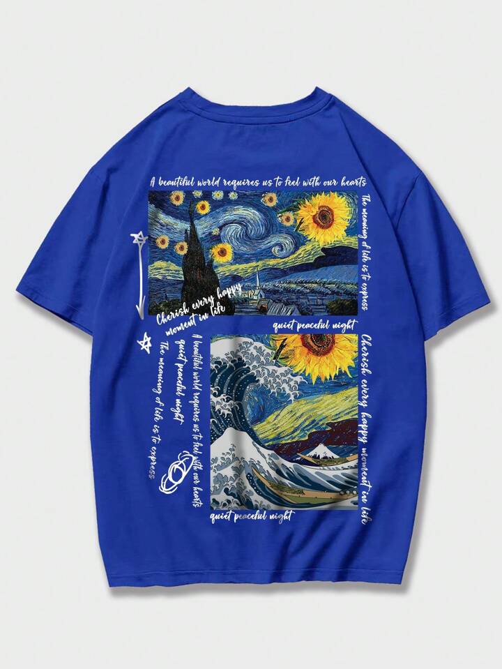 Street Life تي شيرت شعار & طباعة عباد الشمس للشباب
