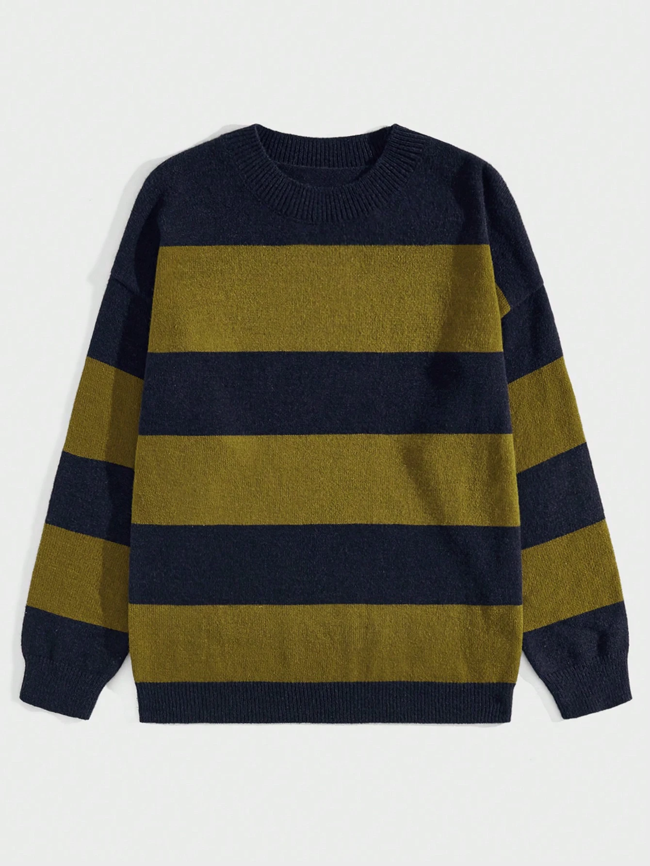 Street Life كنزة صوف نمط مخطط منخفض الاكتاف للشباب