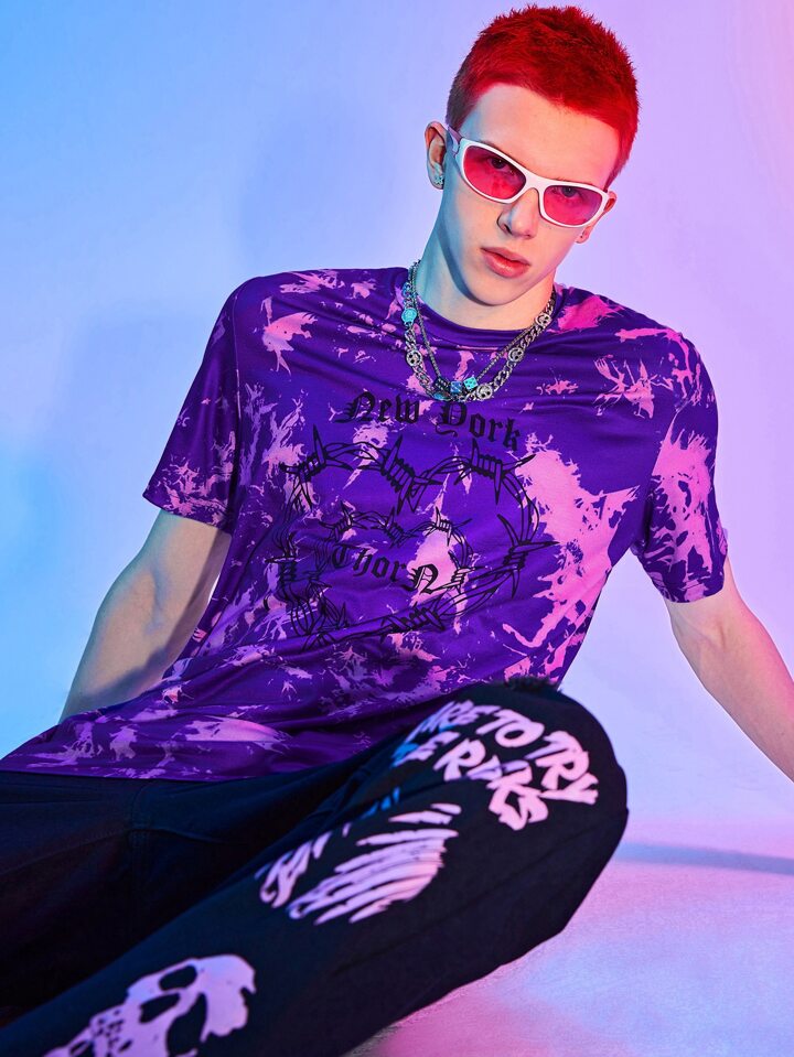 Street Life تي شيرت صبغ متعادل بطباعة أحرف للشباب