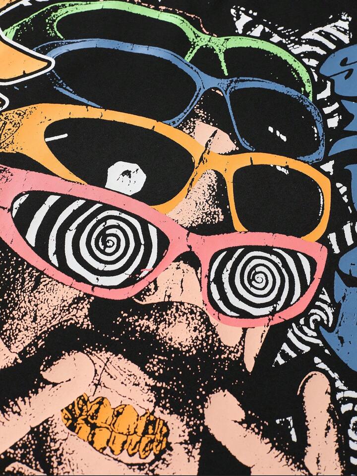 Street Life تي شيرت رجالي قصير بطبعة رسومية سميك وكبير الحجم
