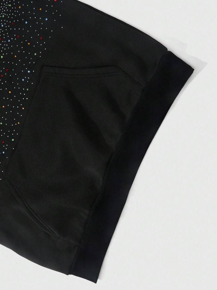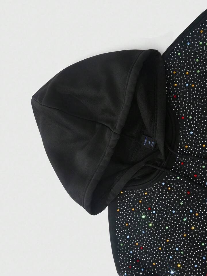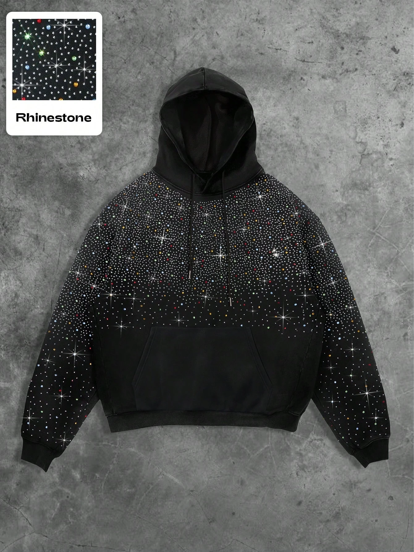 Street Life بلوزة هودي يمكن ارتداؤها من قبل الجنسين مزينة بتصميم أمريكي شارعي وزخارف من الراين