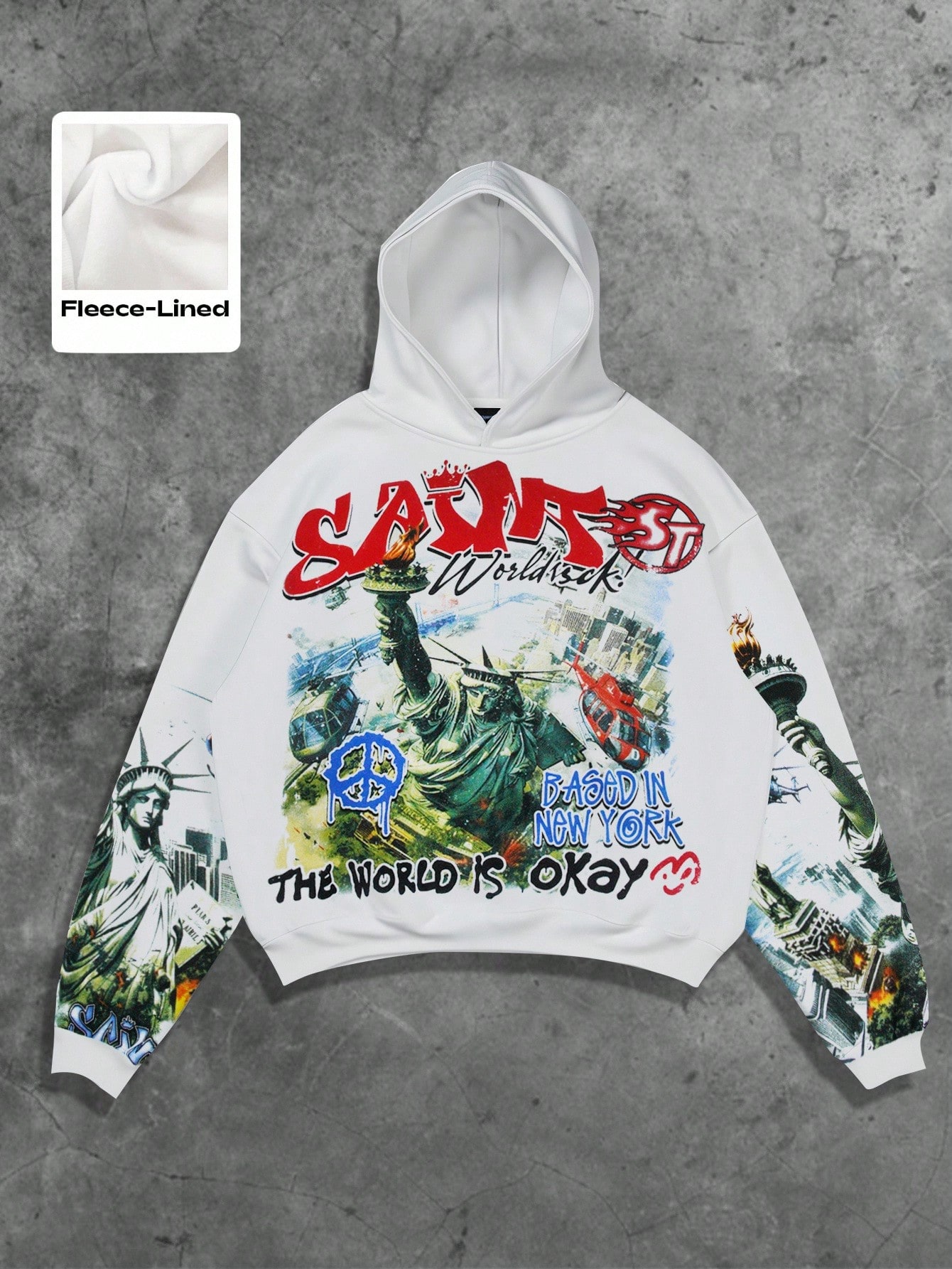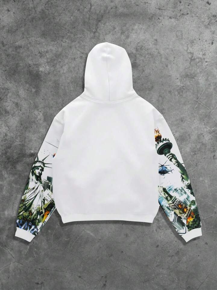 Street Life هودي كاجوال للرجال بطبعة هيكل عظمي ولهب باللون الأسود 0830-00921، موسم الخريف