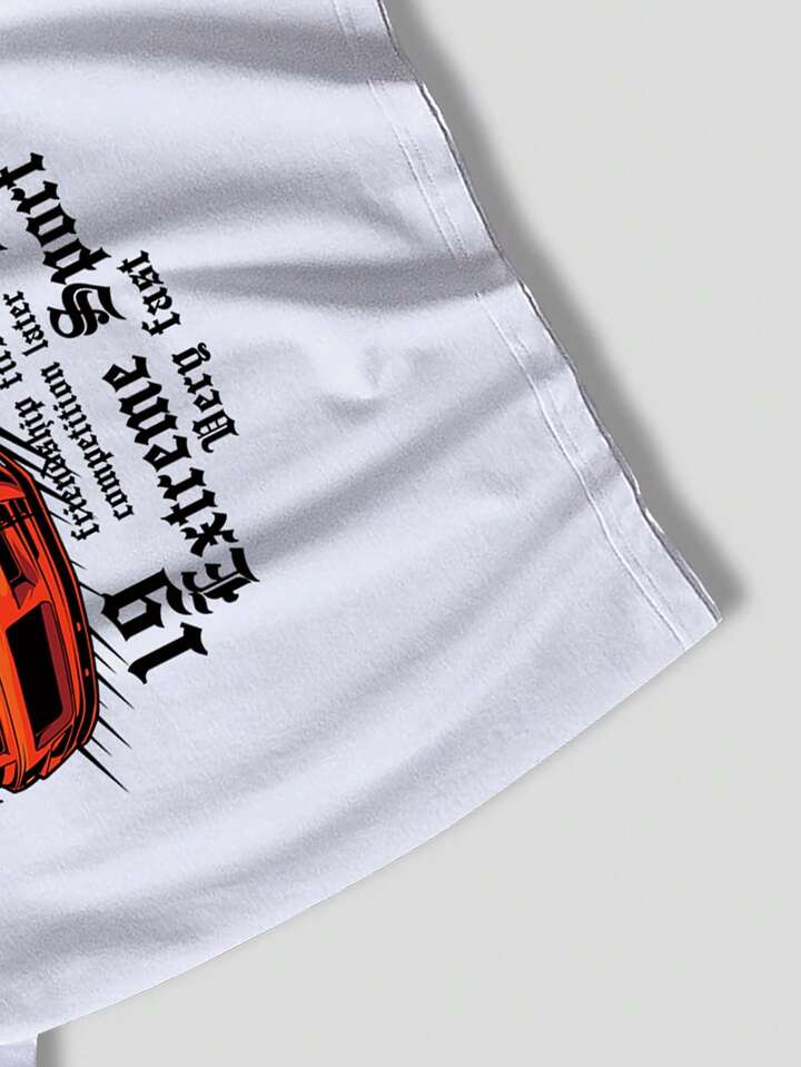 Street Life تي شيرت رجالي برسوم سيارة وحروف