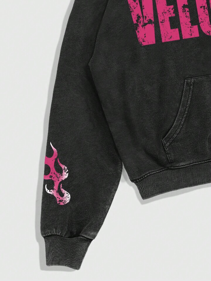 Street Life هودي رجالي كاجوال مطبوع برقم وحرف، مع سحاب