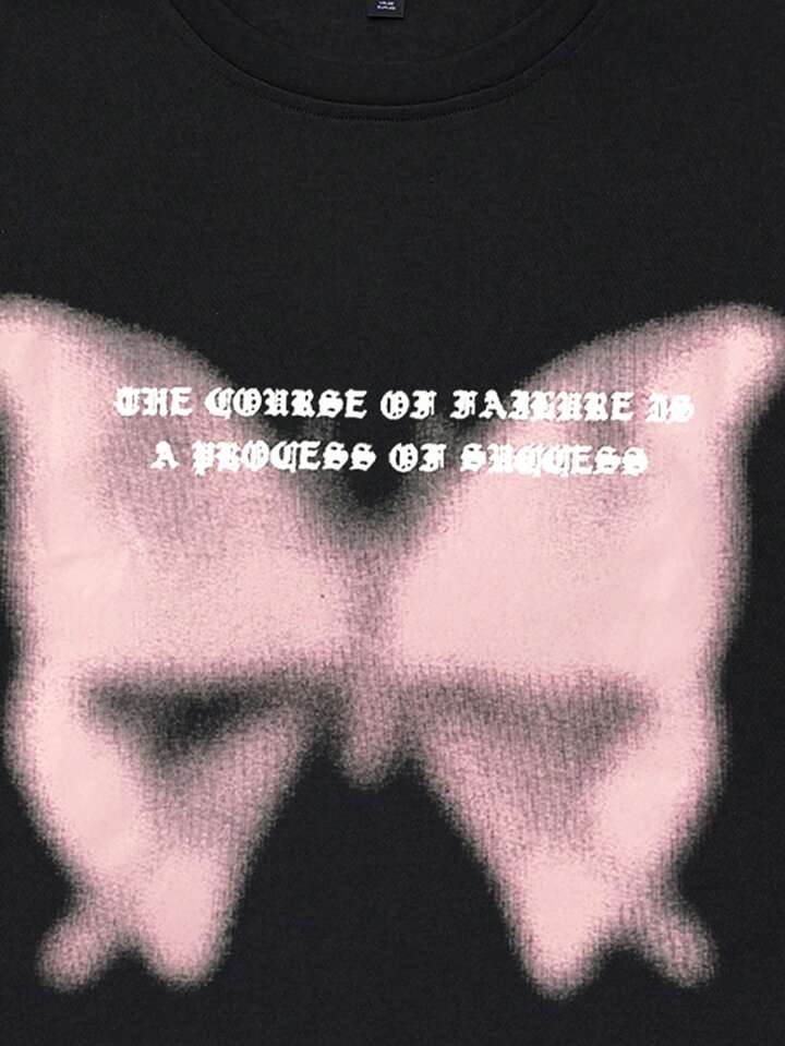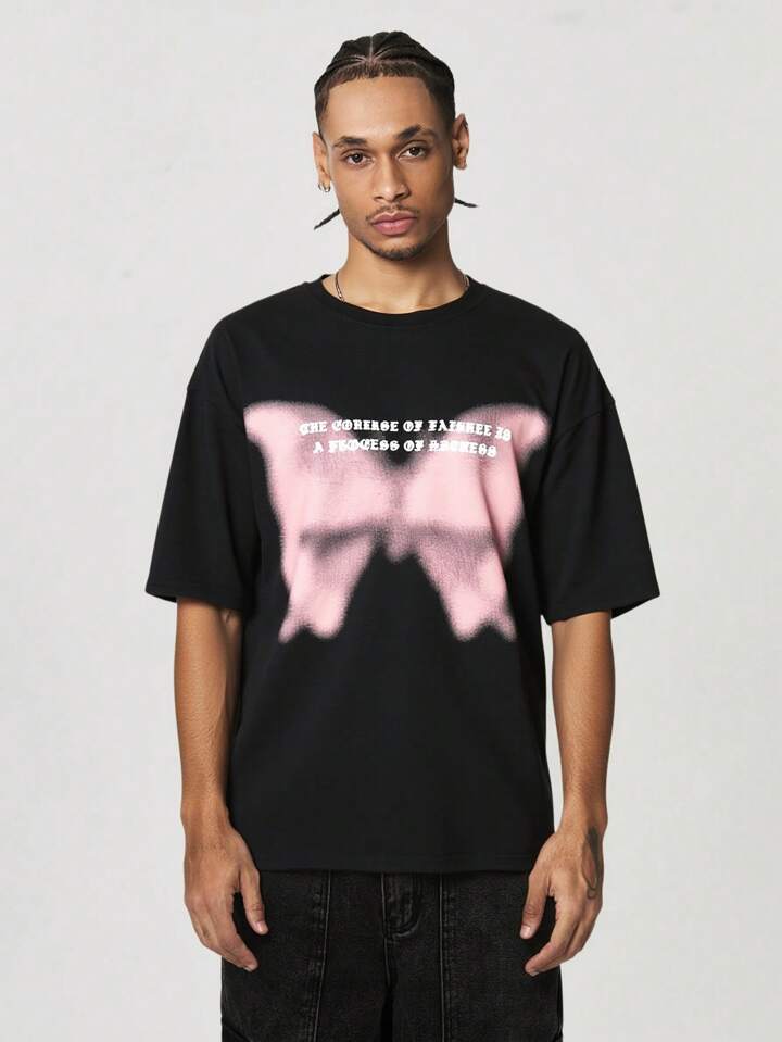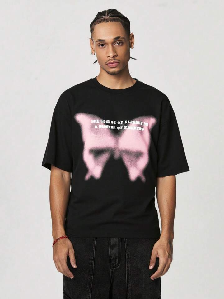 Street Life تي شيرت T بيانات وطبعة الفراشة من القطن للرجال Y2K، مدرسي