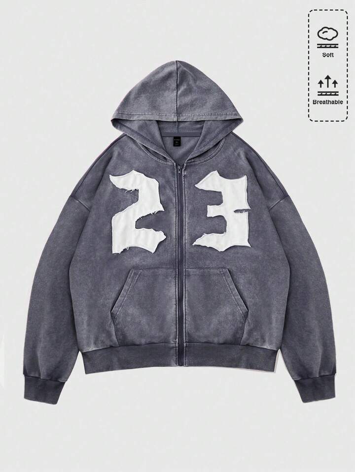 Street Life بلوزة رياضية مطرزة بأرقام مشوهة للرجال، ملابس الشارع، الخريف