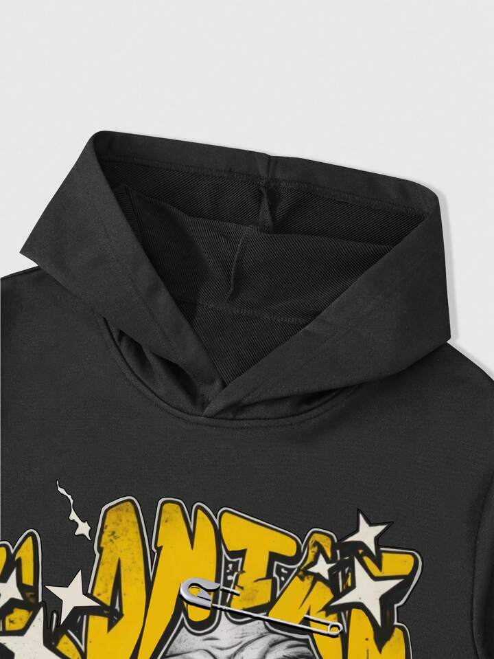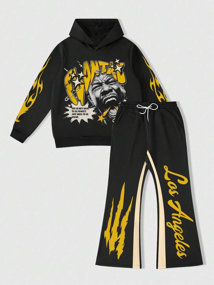 Street Life بدلة رياضية كاجوال مكونة من هوديي مطبوع عليه أرقام وحروف وبنطلون بسحاب أمامي، ملابس خريفية
