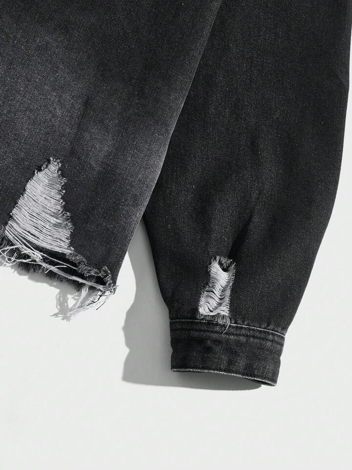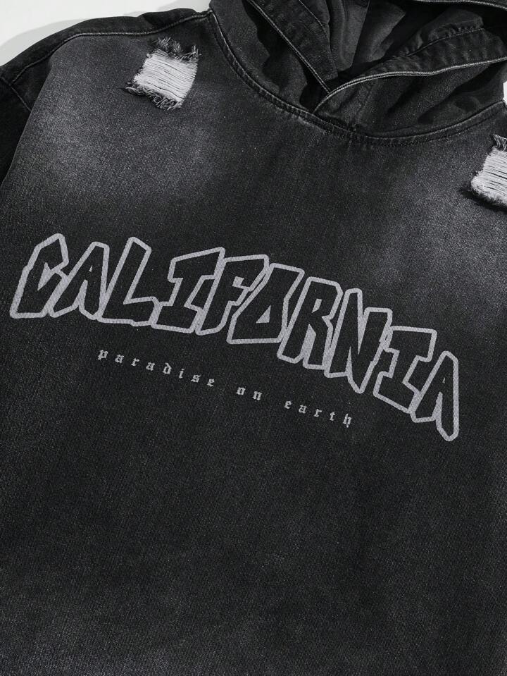 Street Life جاكيت جينز مبطنة برأس للرجال بطباعة حرفية، نهاية مبهرة والتفاصيل المشوهة، للمدرسة