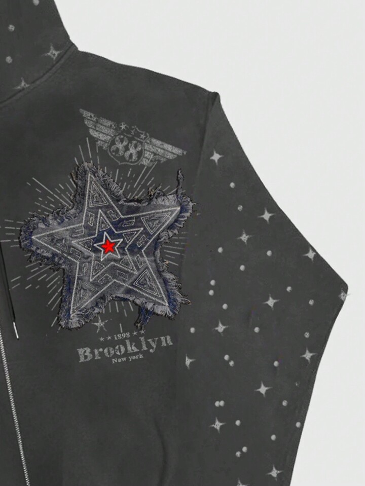 Street Life هودي كاجوال بسحاب وياقة غير رسمي للرجال مطبوع عليه حروف وخماسي النجوم ، مناسب للخريف والشتاء