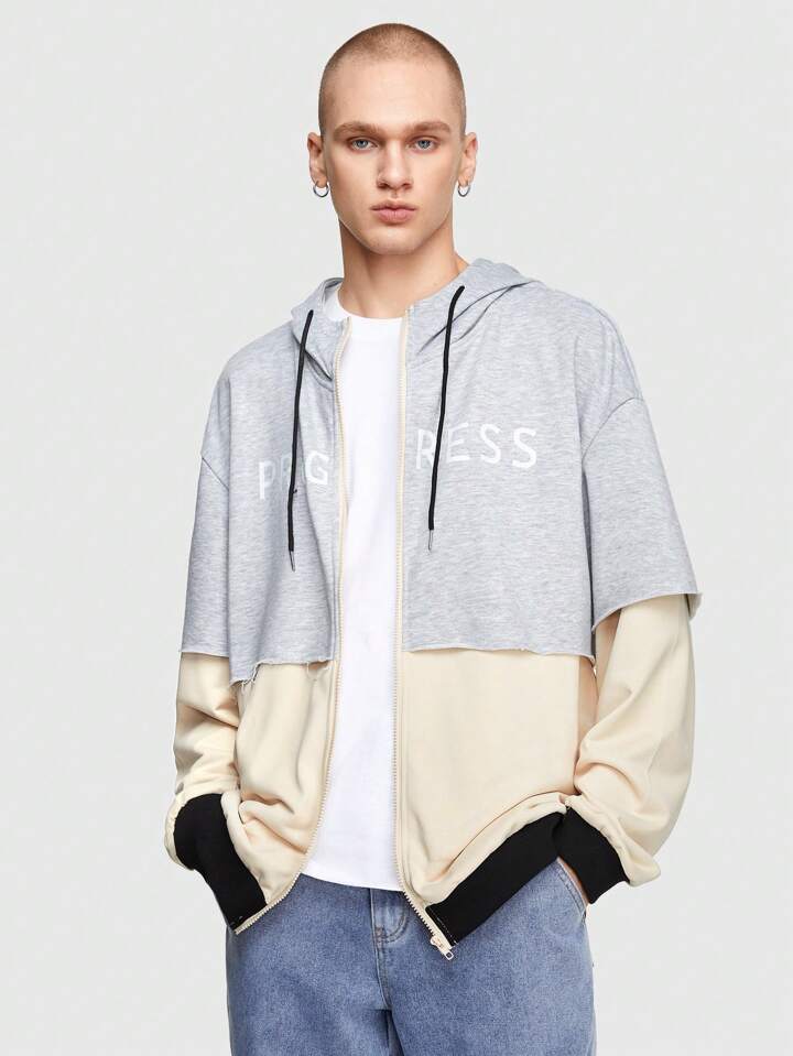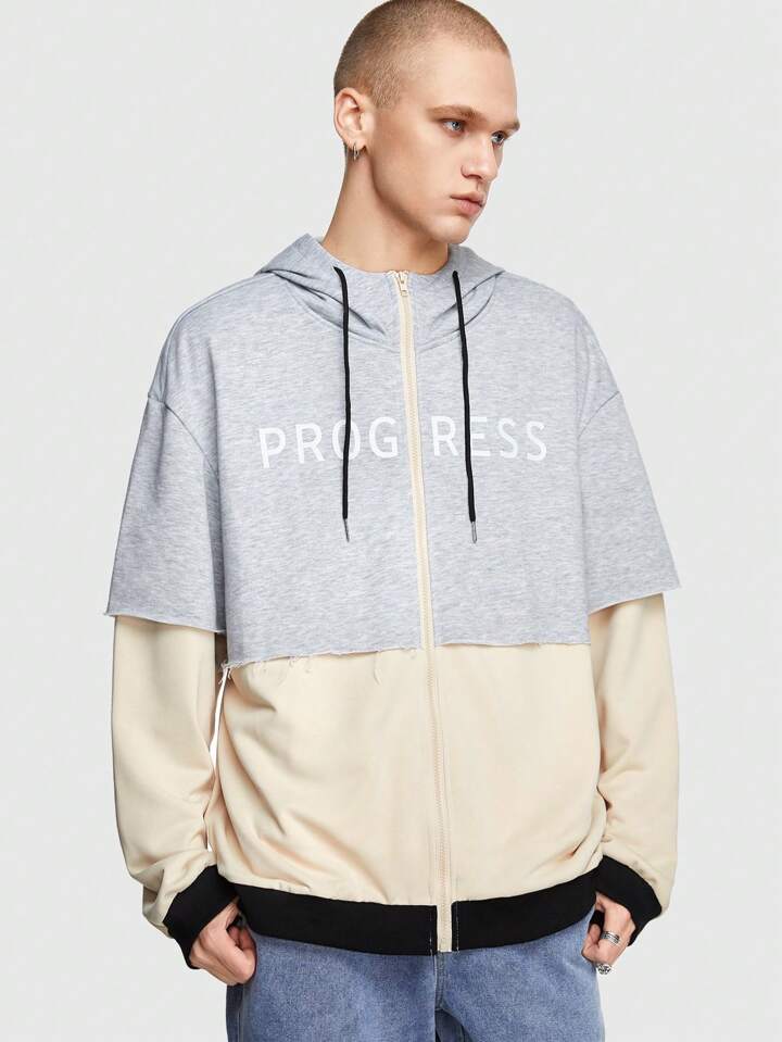 Street Life سترة رجالية مطبوع عليها حرف الانجليزية مع كتف منخفض و غطاء رأس برباط , 2 في 1
