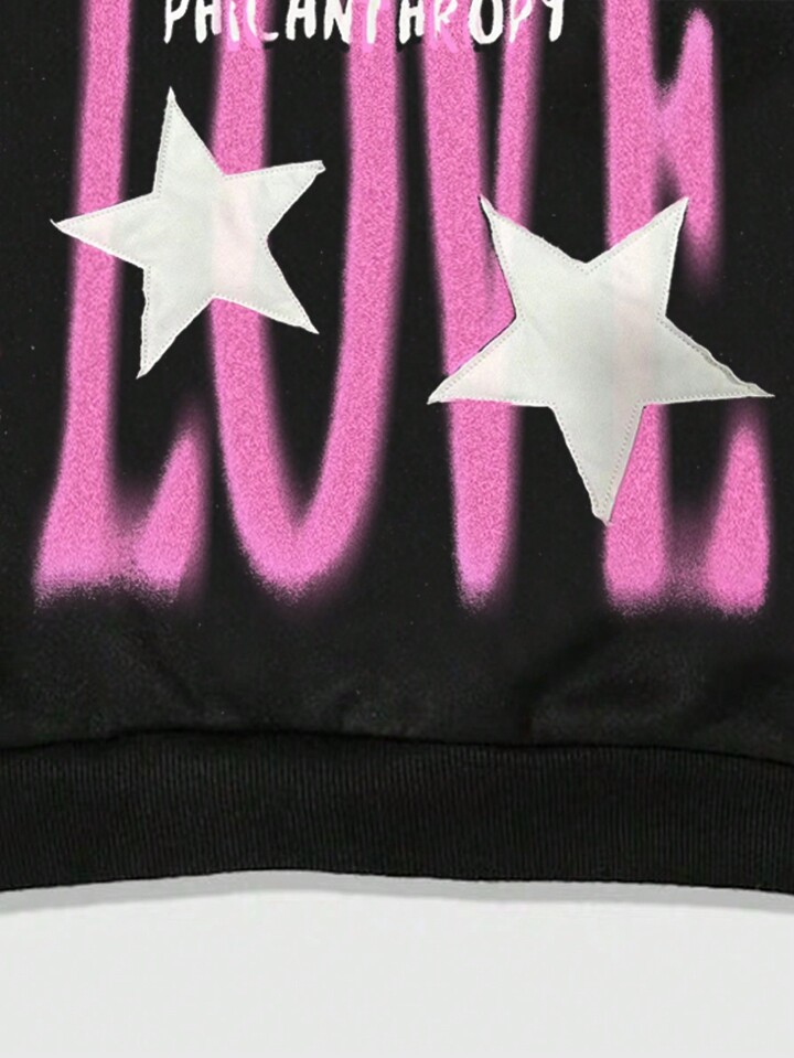 Street Life بلوزة رياضية مطبوع عليه حرف للرجال مع كابوشون، ملابس يومية عادية