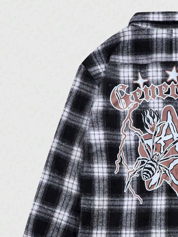 Street Life قميص رجالي بطبعة المربعات، نجمة وشعار قصير الكلمات الإنجليزية