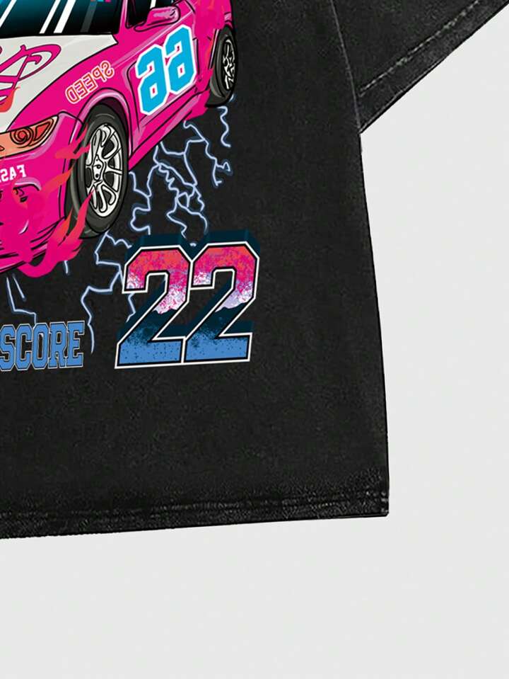 Street Life تي شيرت تيشيرت بطبعة سيارة سباق مغسول بأكمام قصيرة بنمط تي شيرت كرة القدم للرجال، طراز شارع عالي عتيق للصيف، للمدرسة