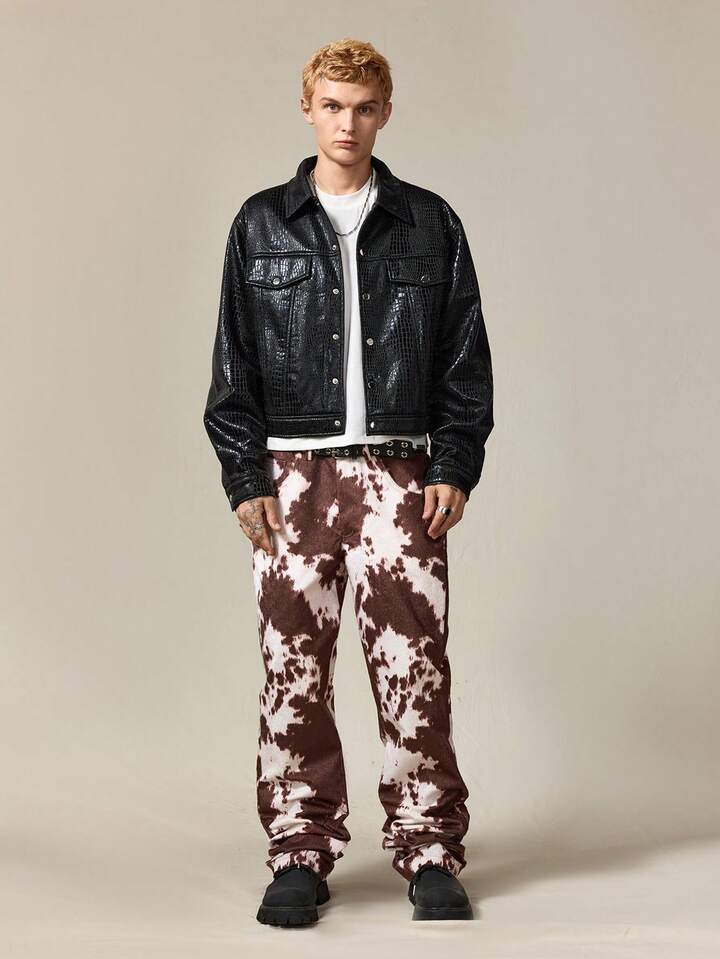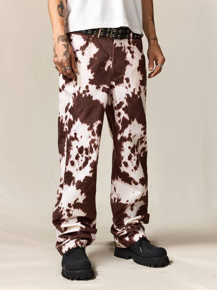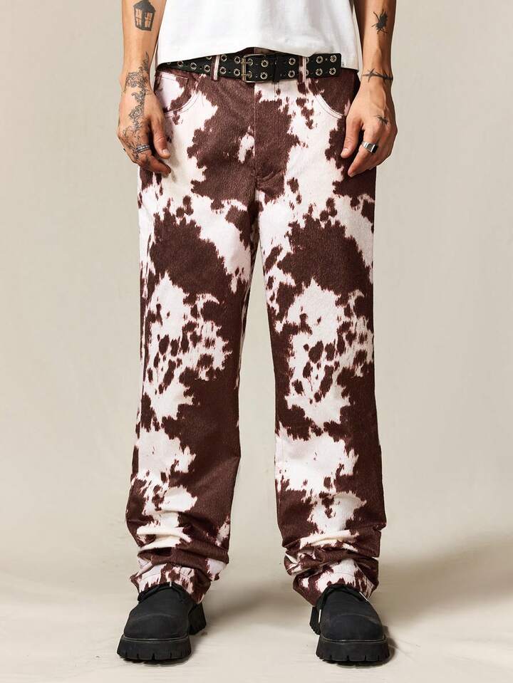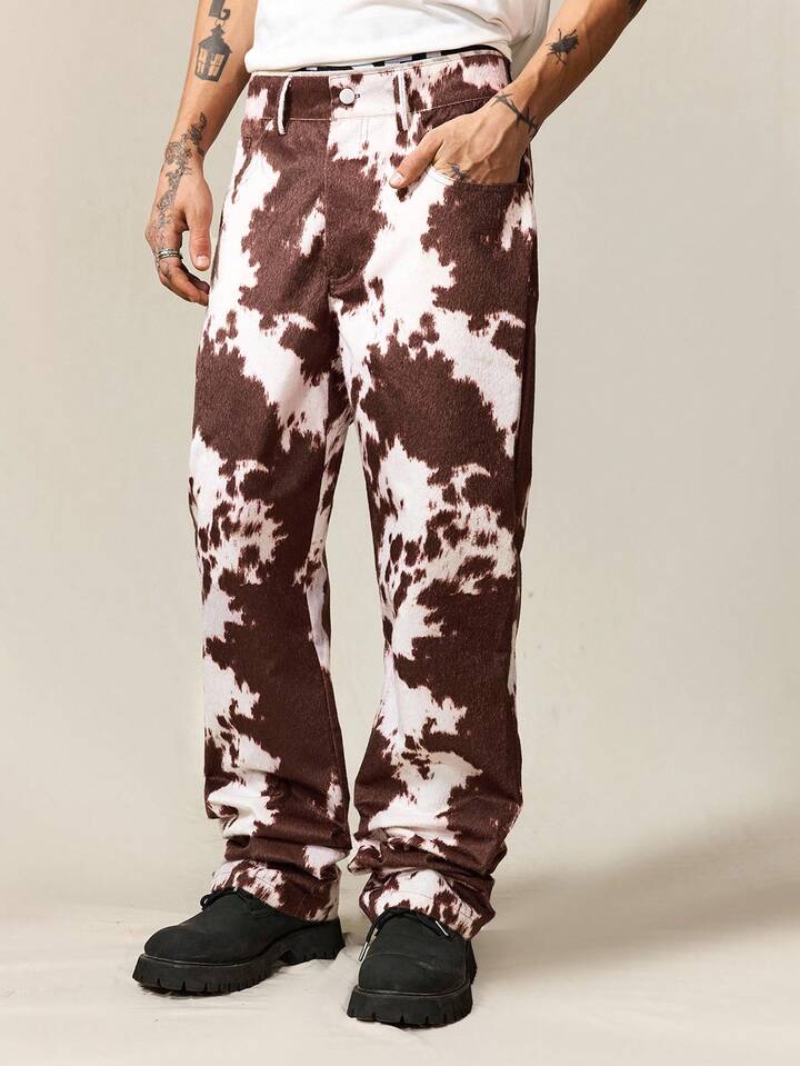 Street Life بنطلون كاجوال رجالي بطبعة بقرة عتيقة، خريف