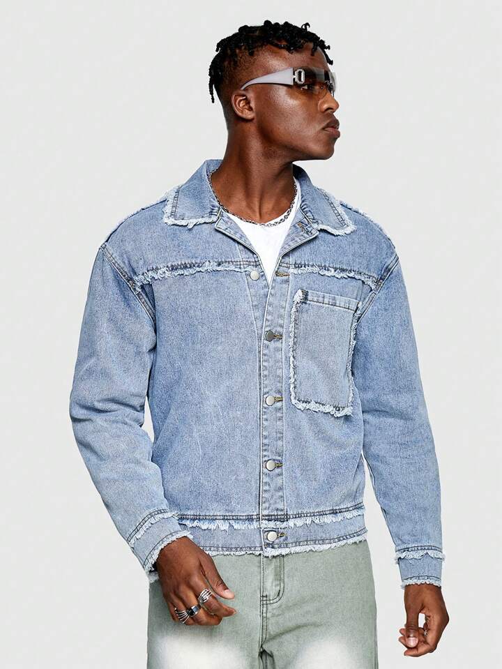Street Life جاكيت جينز مغسول بحواف متقصفة للرجال