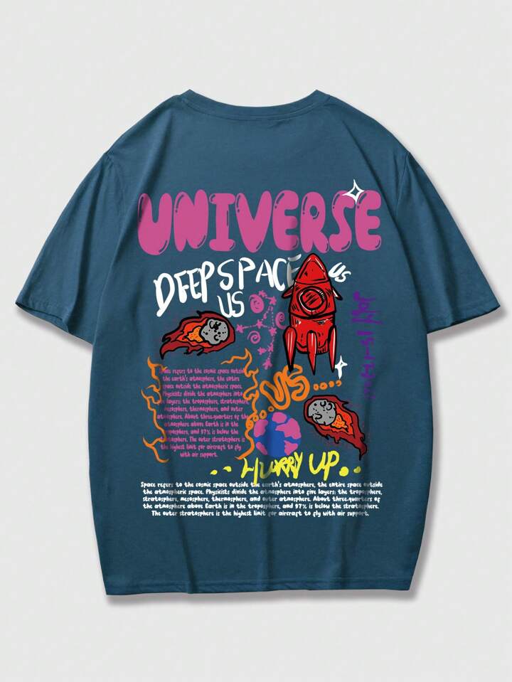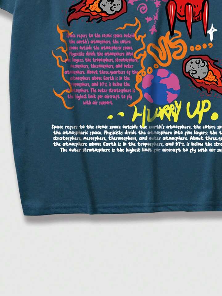 Street Life تيشرت رجالي بشعار ورسوم كرتونية
