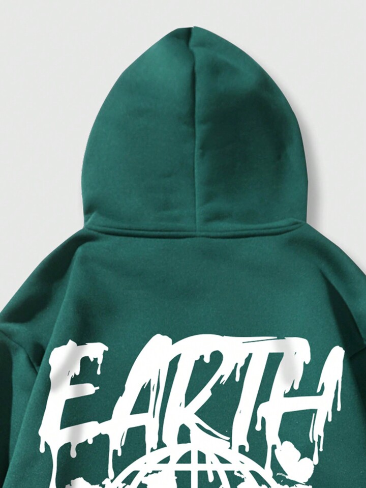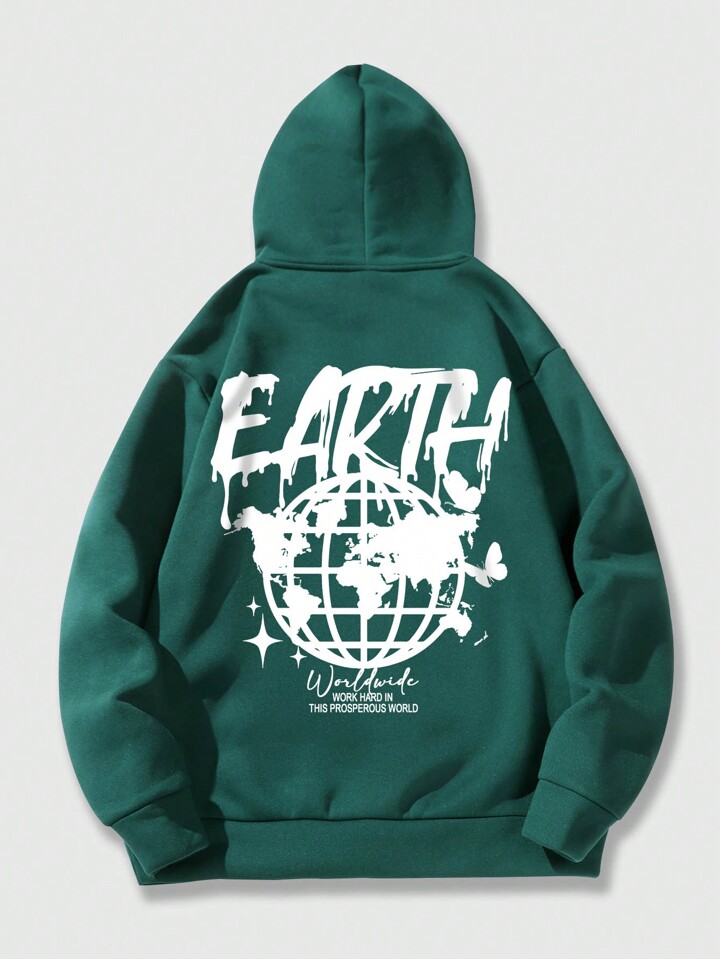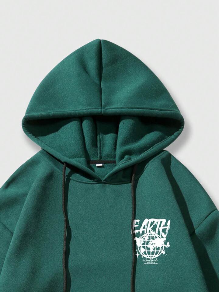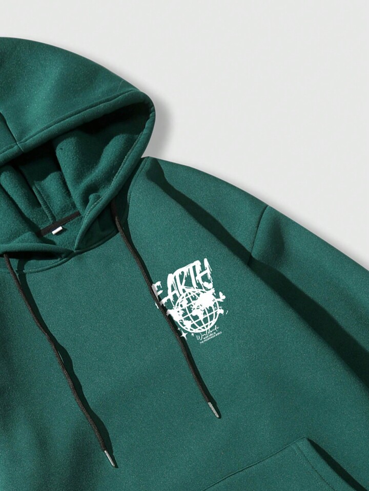 Street Life هوديي للرجال برسومات الشعار وجيب الكنغر ورباط حراري مبطن