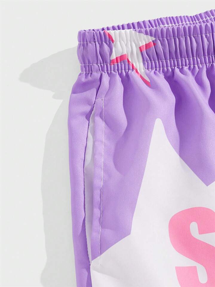 Street Life شورت رجالي مطبوع عليه نجوم وأحرف ذو خصر بحبل شدفي, مدرسي