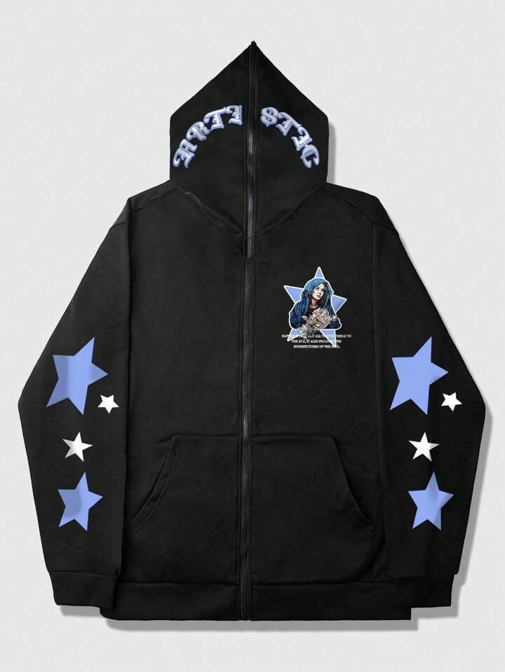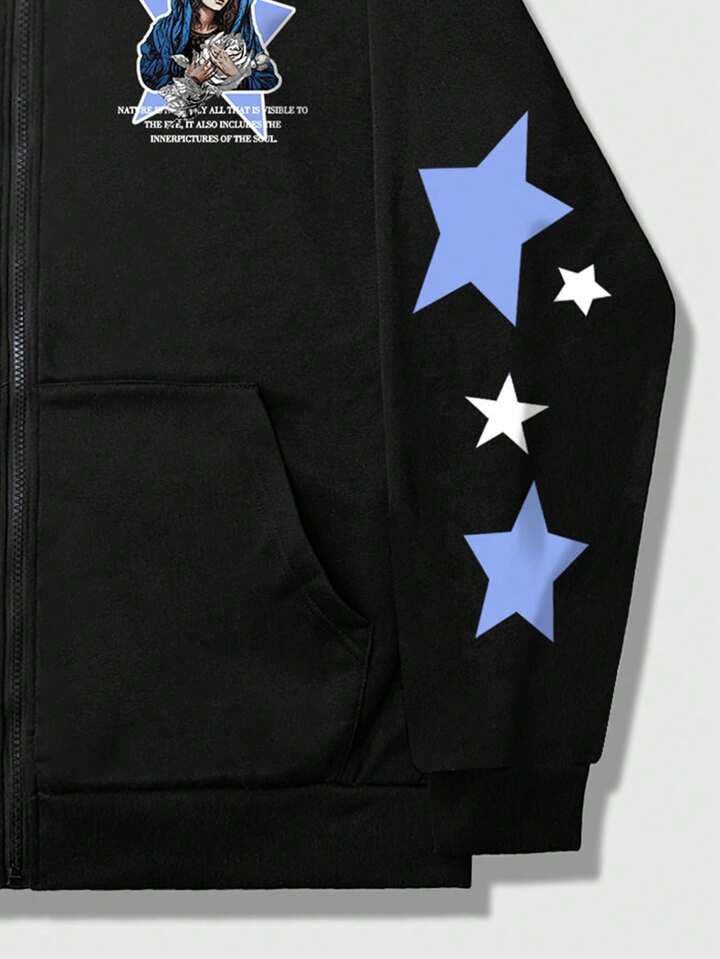 Street Life هودي بسحاب ورسومات نجمية ورسومات حرفية للرجال