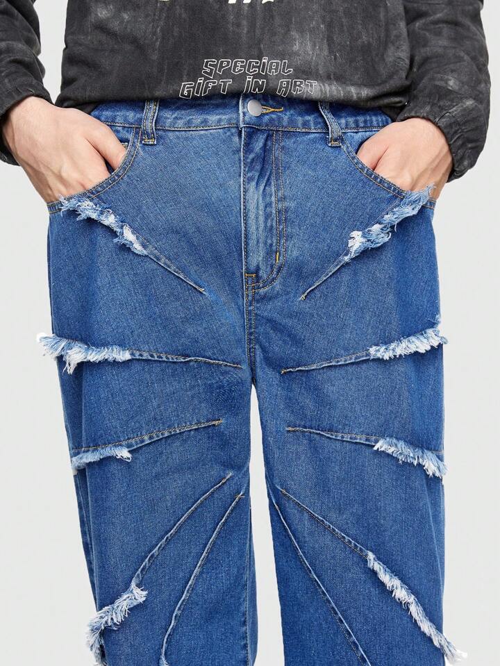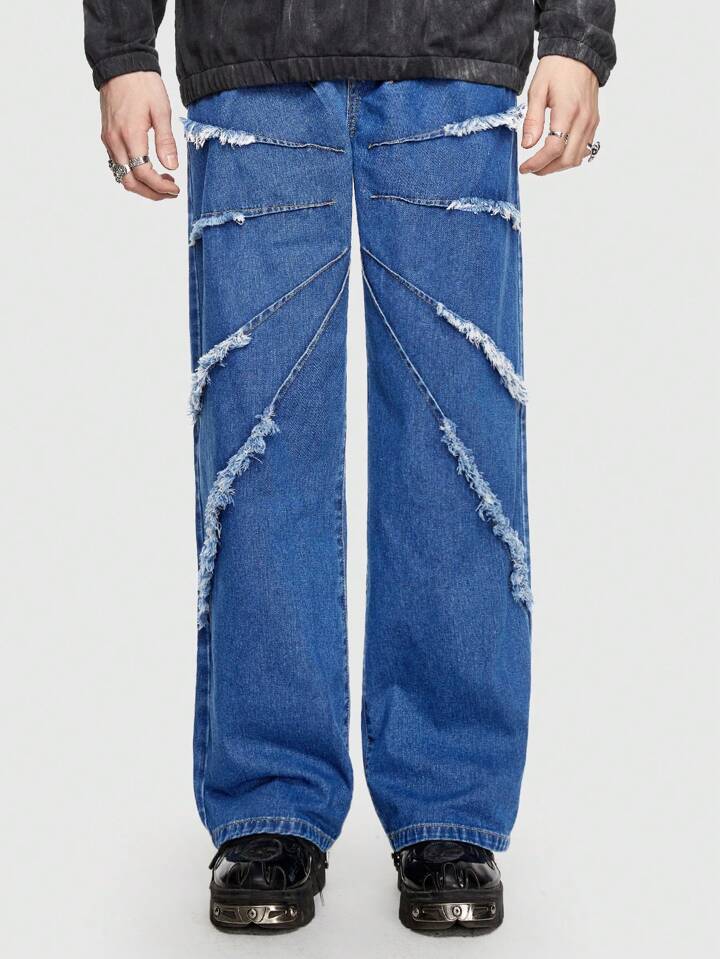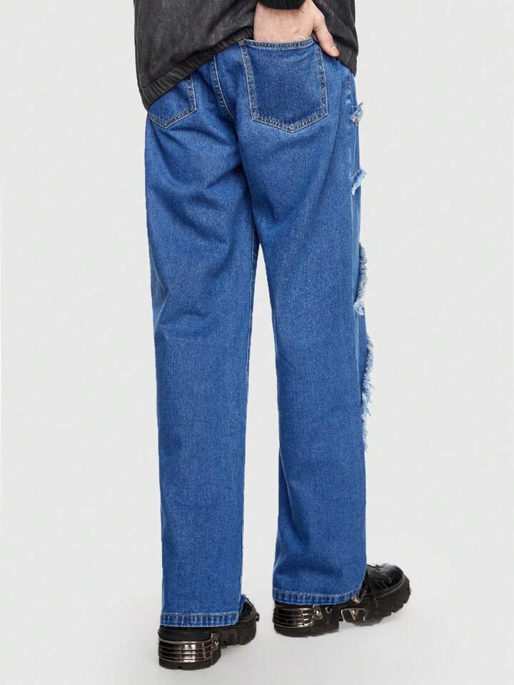 Street Life بنطلون جينز رجالي بقصة مستقيمة وحاشية ممزقة