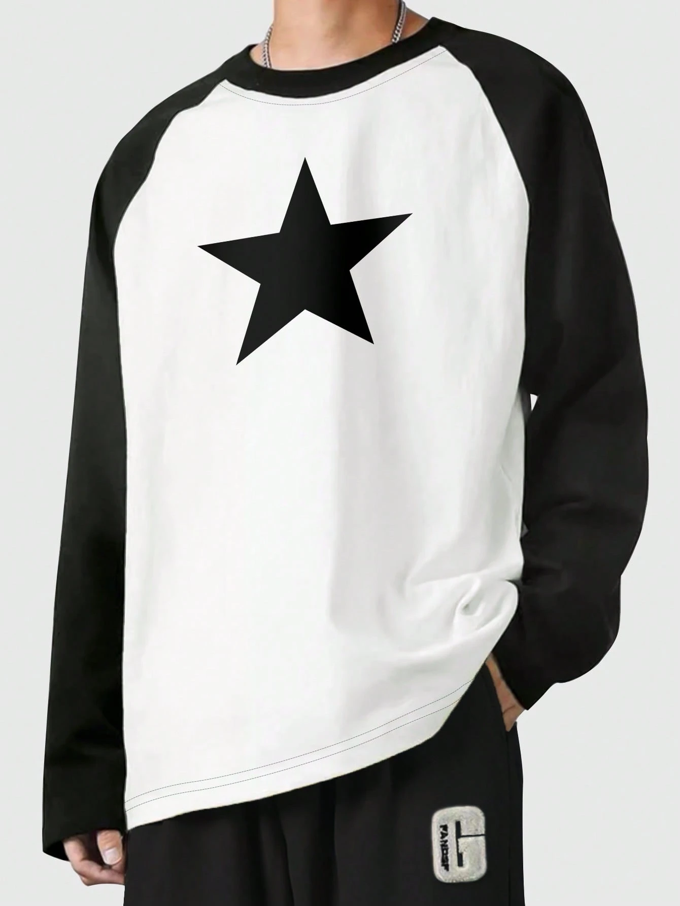 Street Life قميص رجالي بقبة دائرية وطبعة نجمة خماسية موضة شارع مناسب للارتداء العارض في فصلي الربيع والصيف