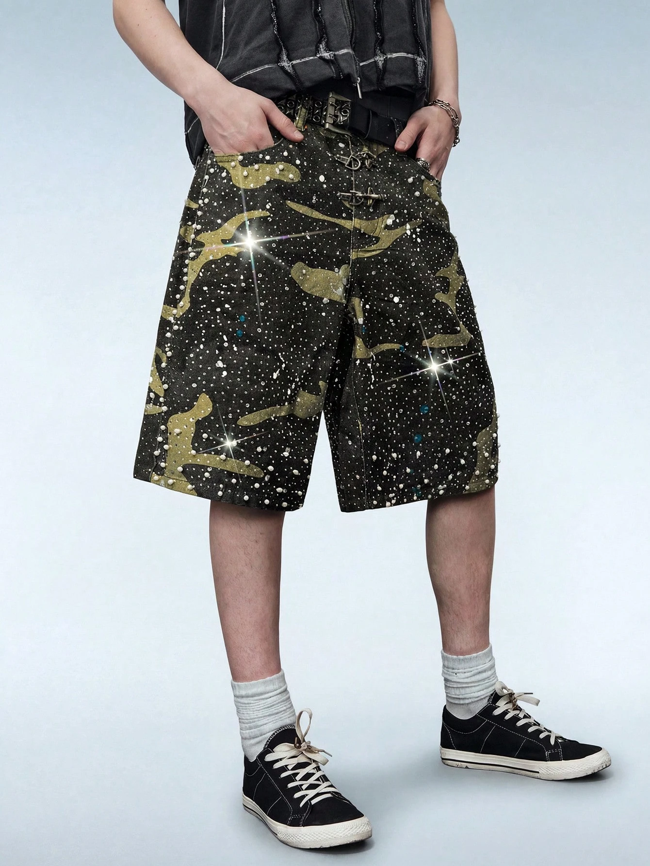 Street Life شورتات جينز فضفاضة بنقشة الكامو مع إبزيم على شكل طائرة للرجال