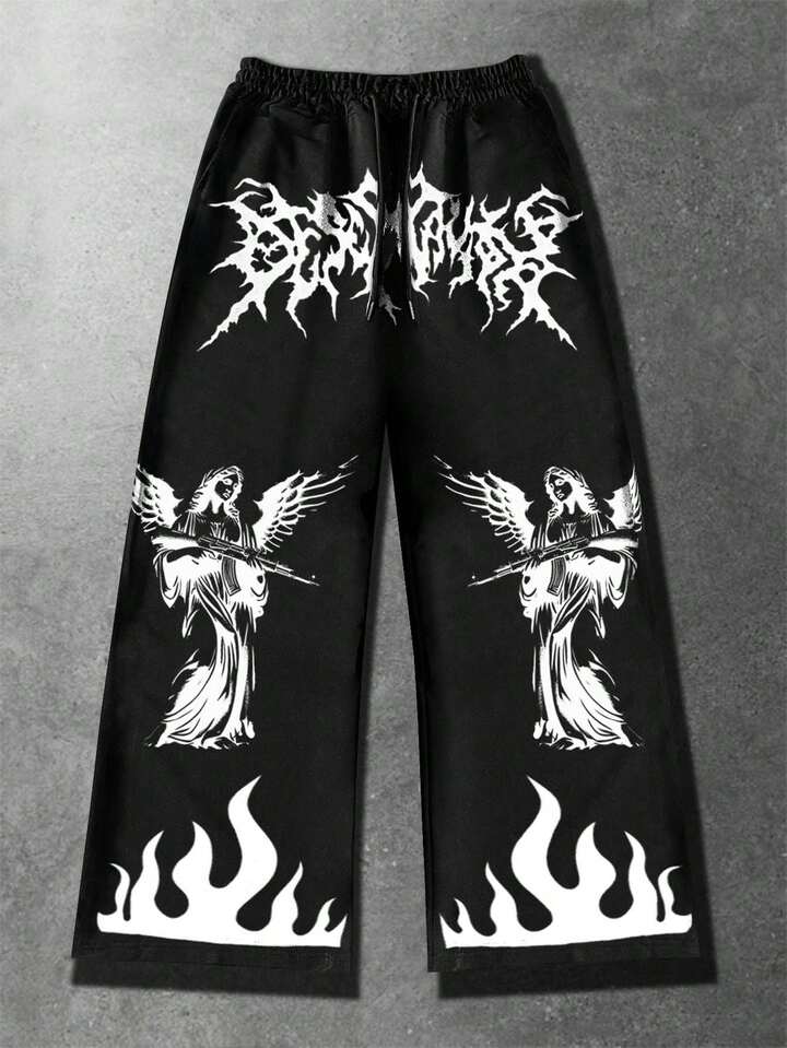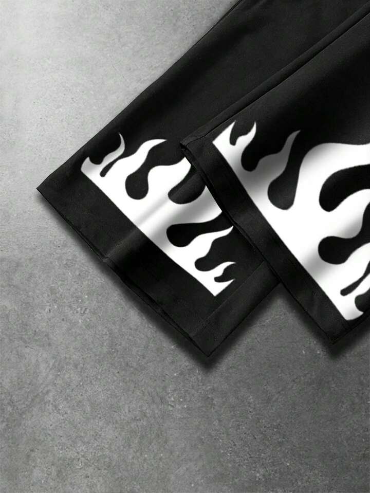 Street Life بنطلون رياضي واسع الساق مطبوع رقميًا بنمط لهب الملاك للرجال
