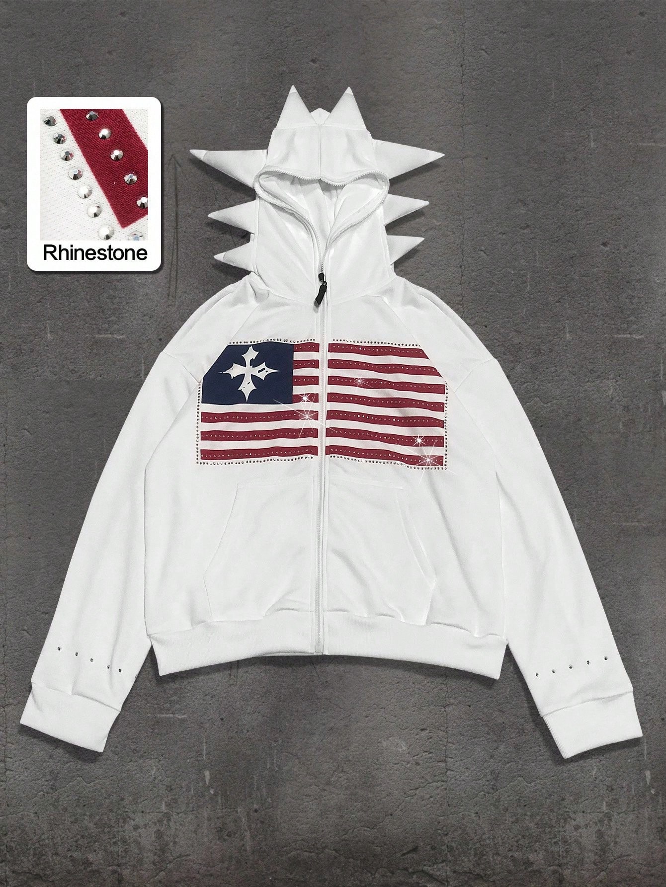 Street Life قبعة رجالية ذات شكل غير متماثل، بلوزة رياضية مطبوعة بالماس اللامع، بتصميم فضفاض قصير، خريف